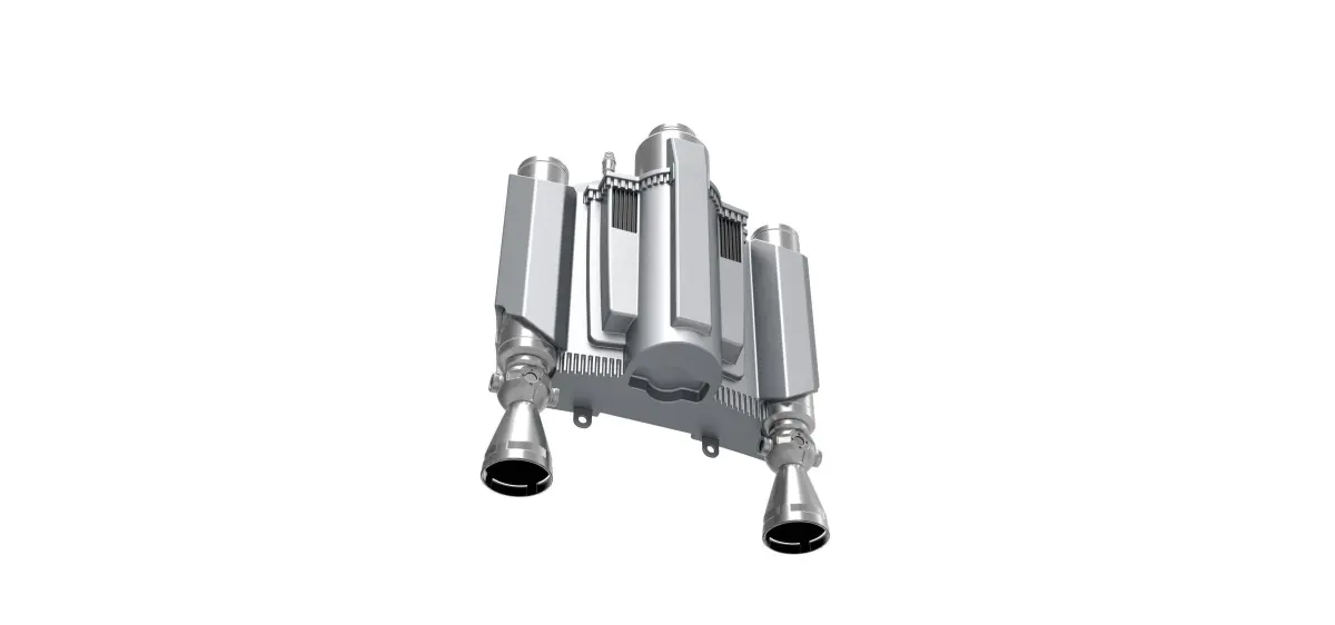 Model consists of parts: body, bottom left damper shell, bottom left damper, bottom right damper shell, bottom right damper, left grid, left top insert, nipple 1,2, nozzle 1,2, nozzle disk insert 1-4, nozzle hub 1-4, nozzle hub insert 1-4, nozzle spacer 1,2, nozzle sphere 1,2, nozzle tube 1,2, right grid, right top insert, ring 1,2, side cap 1,2, side tube 1,2, top cap, top insert 1,2, top left damper shell, top left damper, top right damper shell, top right damper, top tube.