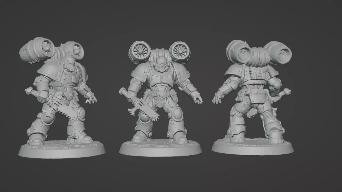 Deploy a brutal heavy sci-fi trooper with a turbine jump pack, riveted plate armor, and a serrated chainsaw blade on a rocky scenic base. The model is engineered for a bold tabletop silhouette and crisp post-prime detail—panel lines, bolts, vents, and tread all read cleanly at gaming scale. Delivered as a single solid STL for straightforward slicing and sturdy prints.