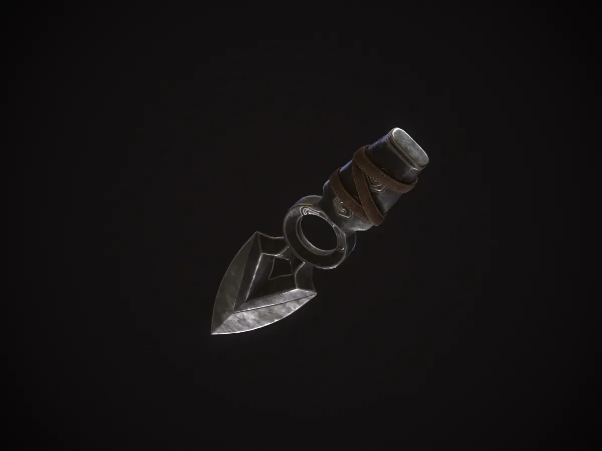 In Valorant, Jett's ultimate ability, Blade Storm, activates her throwing knives. This Jett Knife has been modeled in Autodesk 3ds Max & ZBrush, baked and rendered in Marmoset Toolbag, and textured using Adobe Substance 3D Painter. It is a Game-ready Asset. The object has a Tri-count of 3530. It is done with the Metal Roughness workflow. Textures format TGA. A substance file is included.