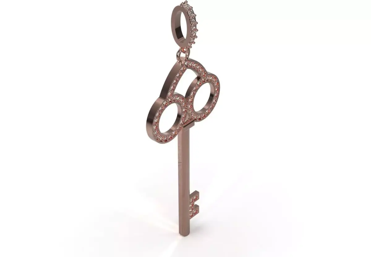 - Pavé Setting: The key surface and heart motif are covered with a large number of small gems (possibly zirconia or diamonds) in a pavé style to maximize the brilliance of the entire pendant.