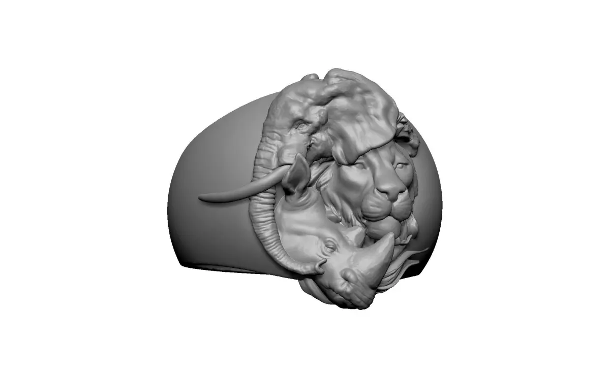 HomeCatalogjewelery ring lion rhinoceros elephant - Wild Safari 3D print model