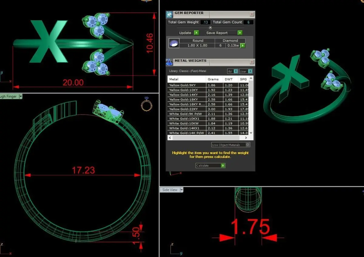 Jewelry Alphabet Ring X with Diamonds 3D print model
