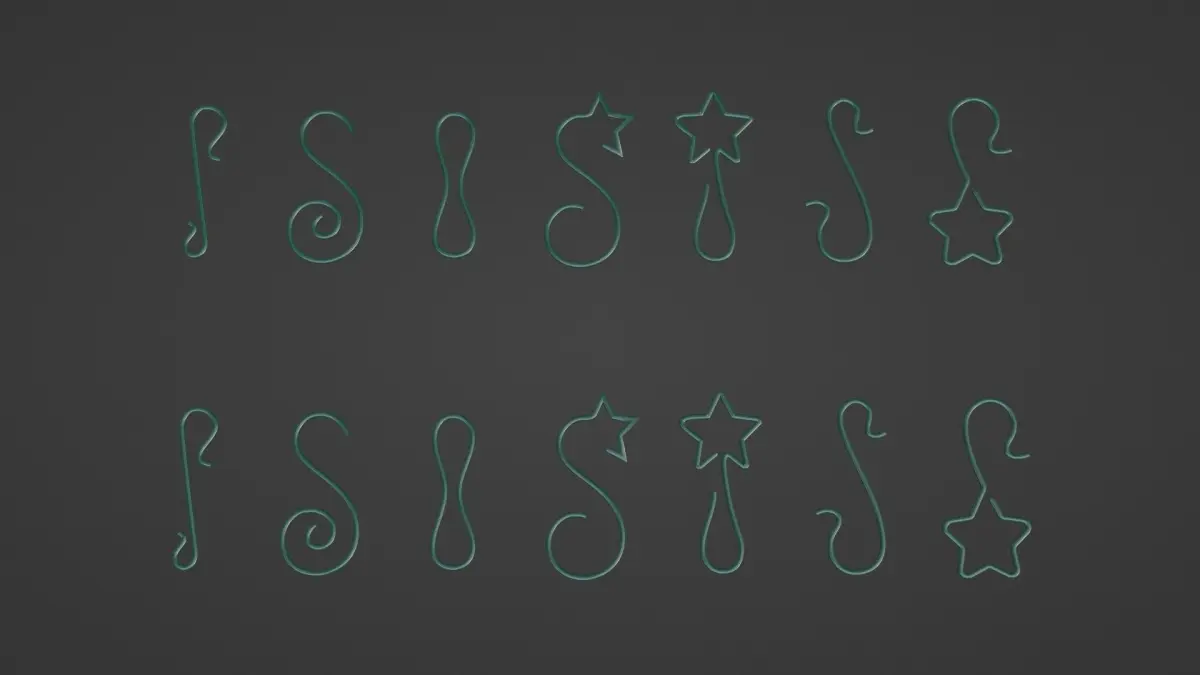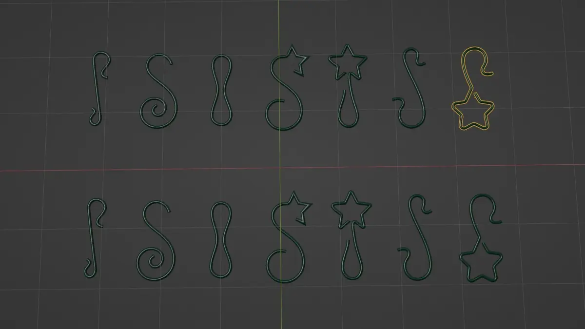 You will get this set of hooks for christmas tree balls. There are several formats and different kind of files: 3D meshes, svg paths, 3D curves, blender file. Enjoy!