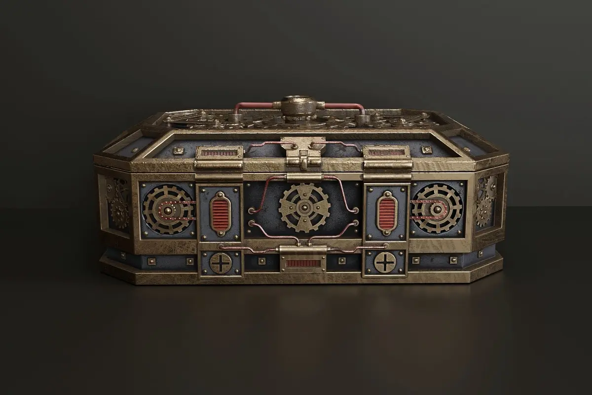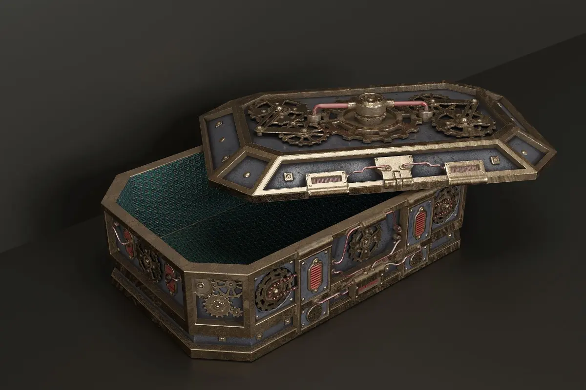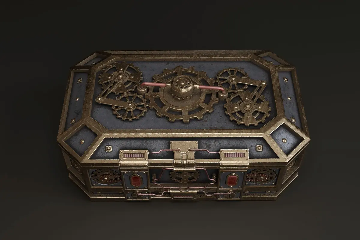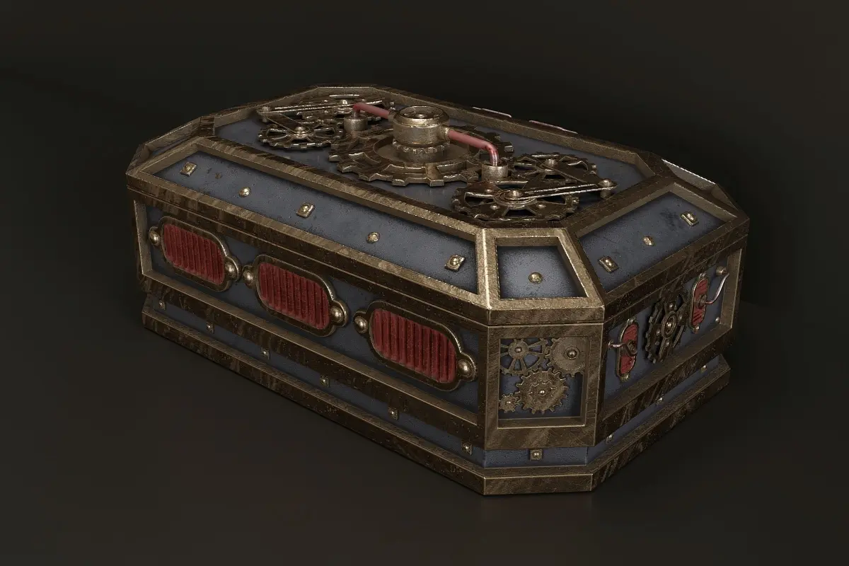 Steampunk jewelry box. The model consists of two objects: Box and lid. Textures (resolution 4096x4096) were made in the Substance Painter program and packed in a zip archive.