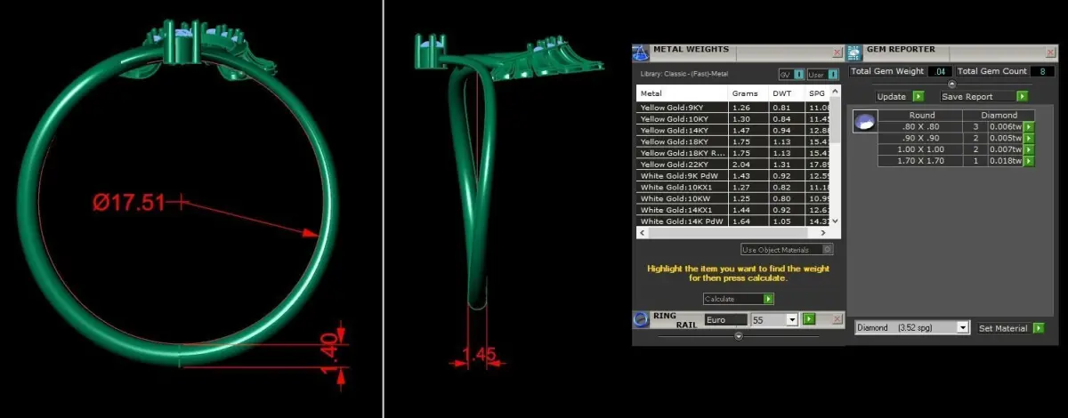 This file is printable. Diamond details, Gem weight, total gem count Metal weights and main measure are on the picture. File extensions: 3DM, OBJ, STL and FBX files. If you need any other extensions send me a message.Doing resizing or any other change is also available. Feel free to contact us for any kind of information you need about this model.