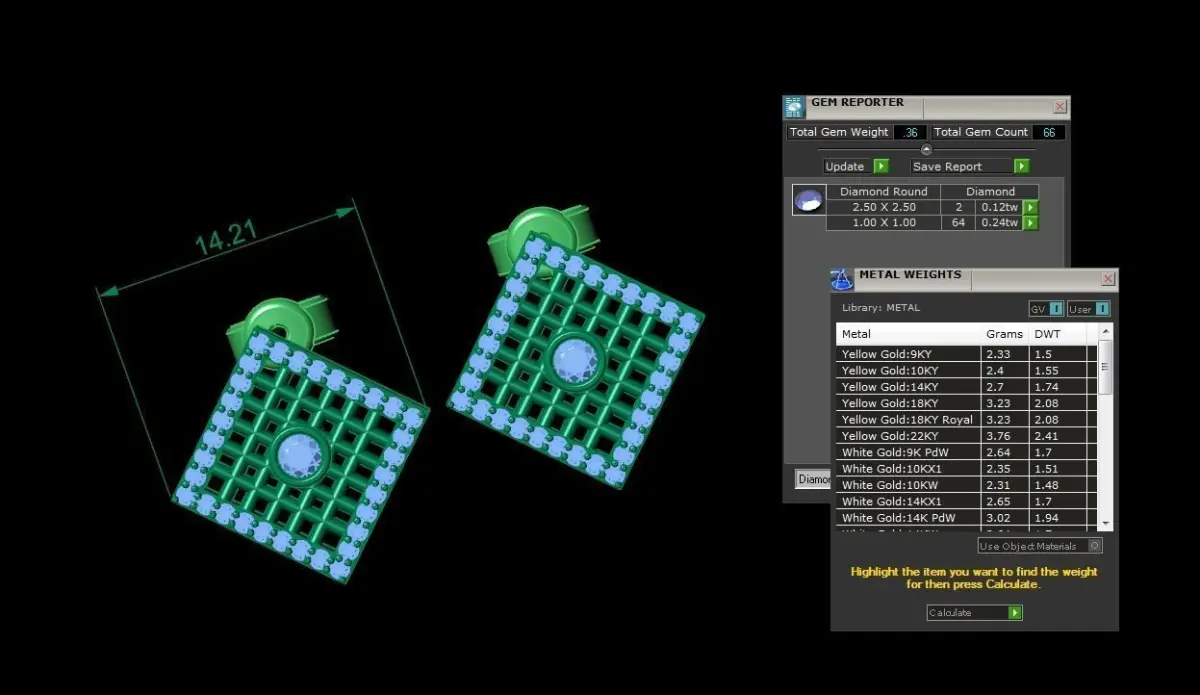 Earring *size: 14.21 and Width: 14.21. More info in report JPG. (this is just earring part)