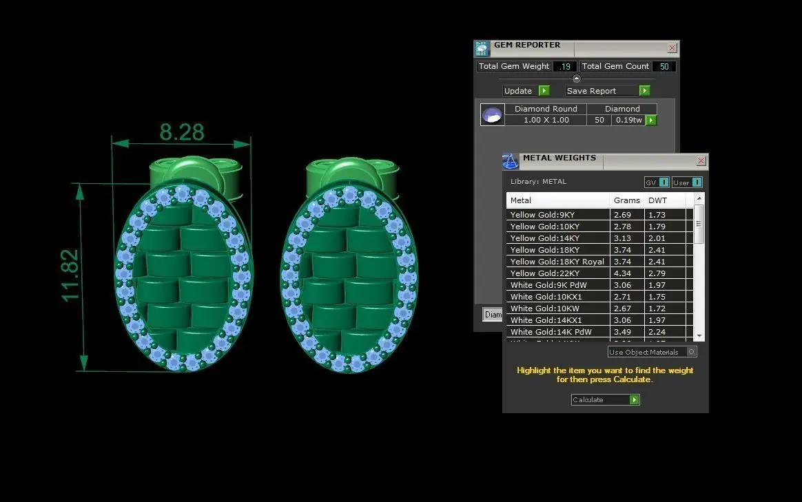 Gems: - Total gem count is 50 and total gem weight is 0.19. Diamonds are round. More info in the picture above.