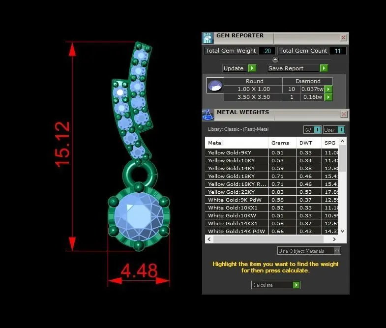 Gems: - Total gem count is 11 and total gem weight is 0.20. Diamonds are round. More info in the picture above.