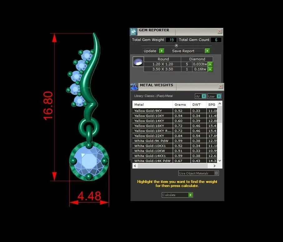 Gems: - Total gem count is 6 and total gem weight is 0.19. Diamonds are round. More info in the picture above.