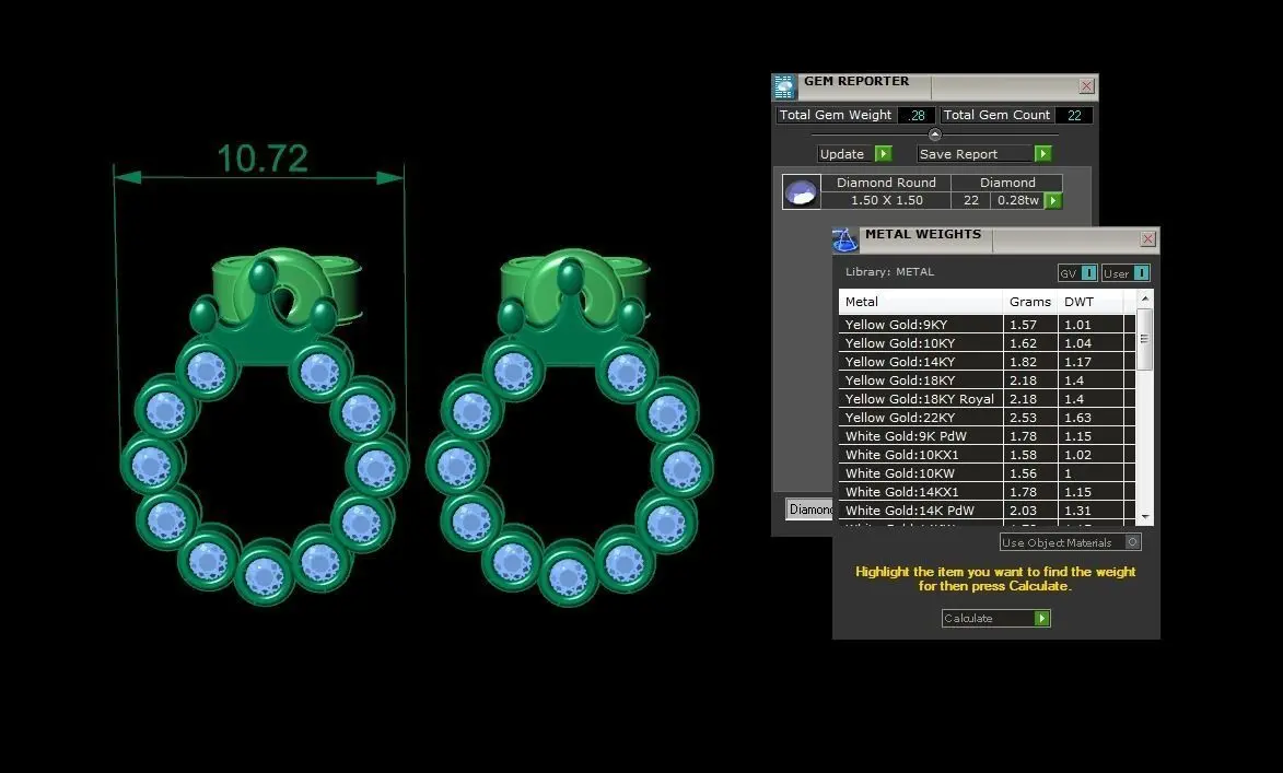 Earring *width: 10.72 *. More info in report JPG. (this is just earring part)