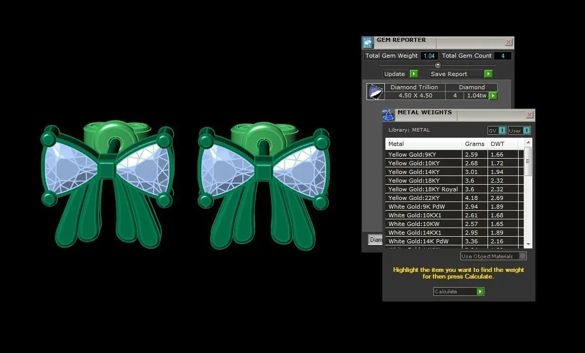 Gems: - Total gem count is 4 and total gem weight is 1.04. Diamonds are Diamond Trillion. More info in the picture above.
