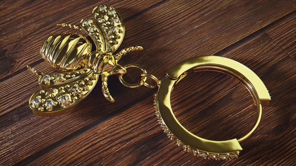 Jewelry Gold Bee Scene. Everything is setup for rendering all kinds of Jewelry 3D Models. Fast and Easy navigate, Camera Setup and all Materials included.Advanced Diamond Shader. Every Materials included. Very Fast Rendering Speed. PBR Materials.