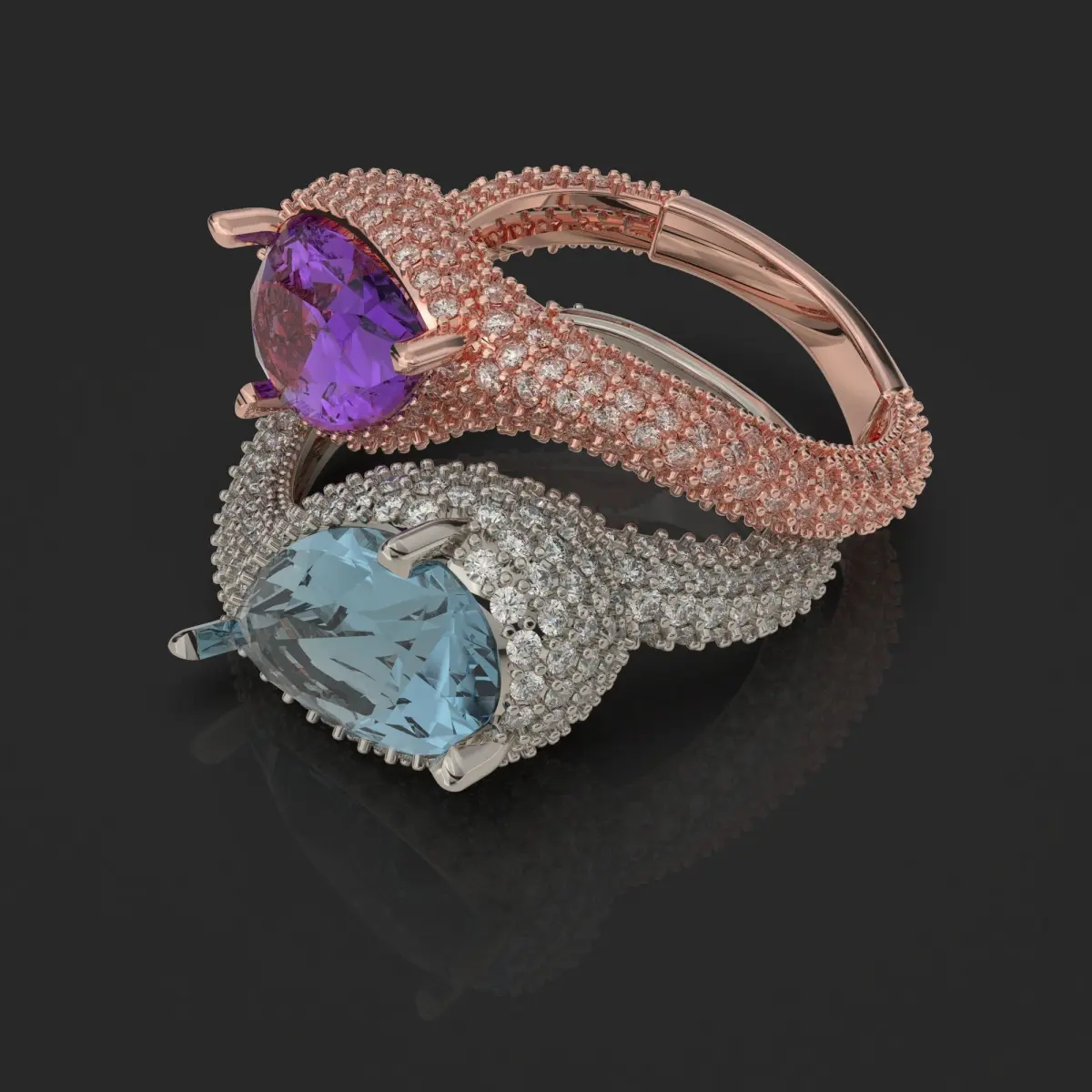 I remind you that this is only 3d model, in order for you to get the finished product you need to contact a jewelry company who have 3d printer or milling machine. All parameters are written below in the description or on images: the size of the product, the gems that are suitable for this Product,the weight of metal in different samples.