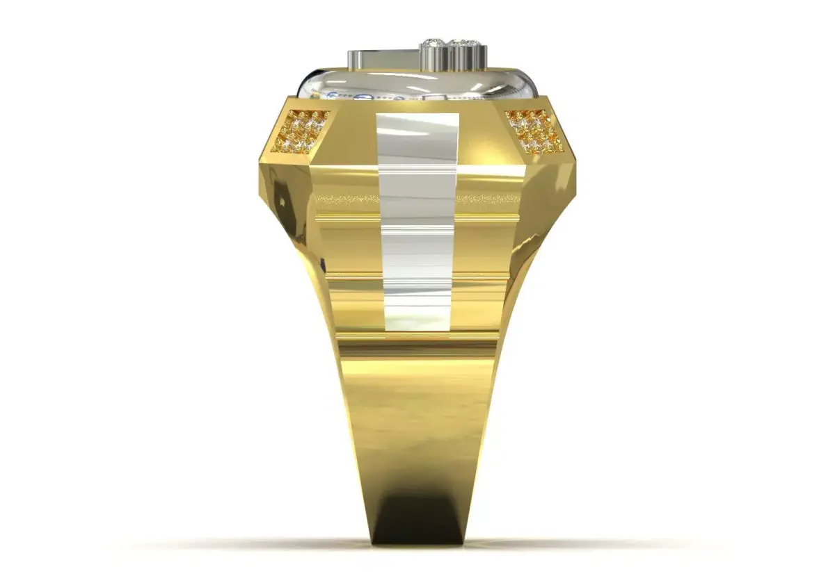Two-tone metal: The combination of shiny yellow gold in the body and white gold/platinum in the side decorations and frame of the gems adds to the luxury and sophistication of the design.