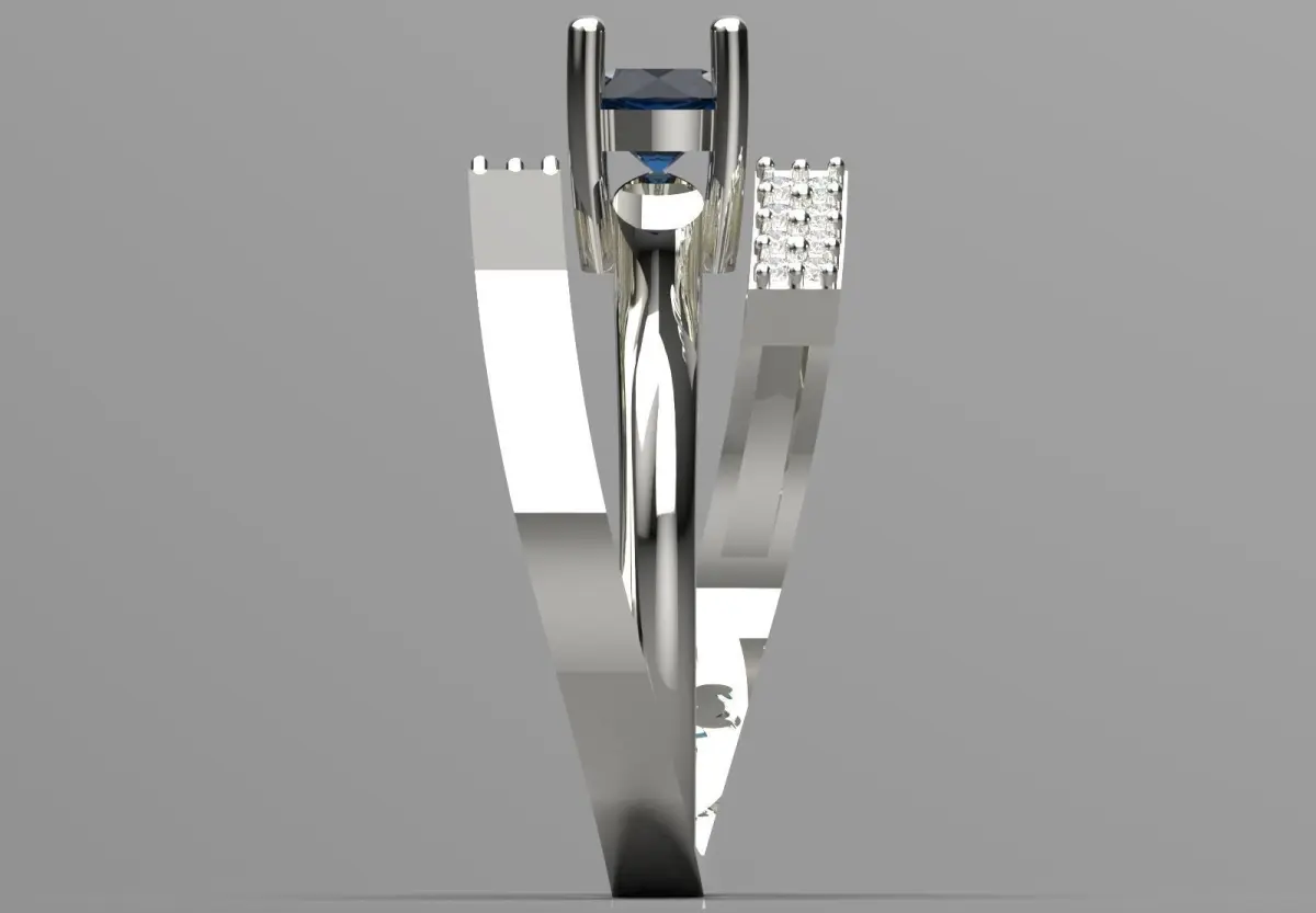 - Side Diamond Cluster: On the other side of the ring, a thin strip of metal runs diagonally under the center diamond and features five small diamonds, giving it a balanced and sparkling look.