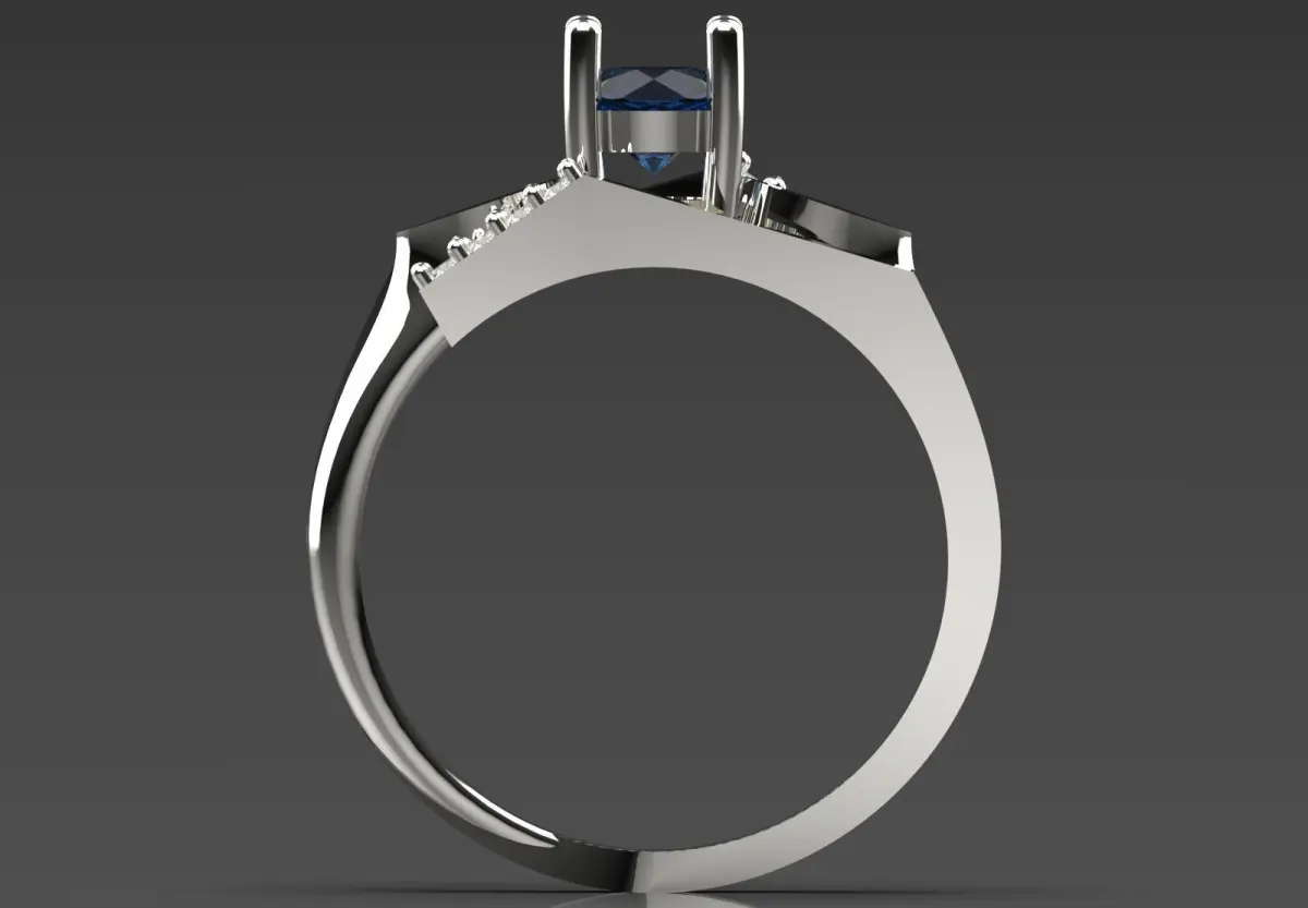 - Colored Stone Centerpiece: The blue center stone serves as the main focal point of the ring.
