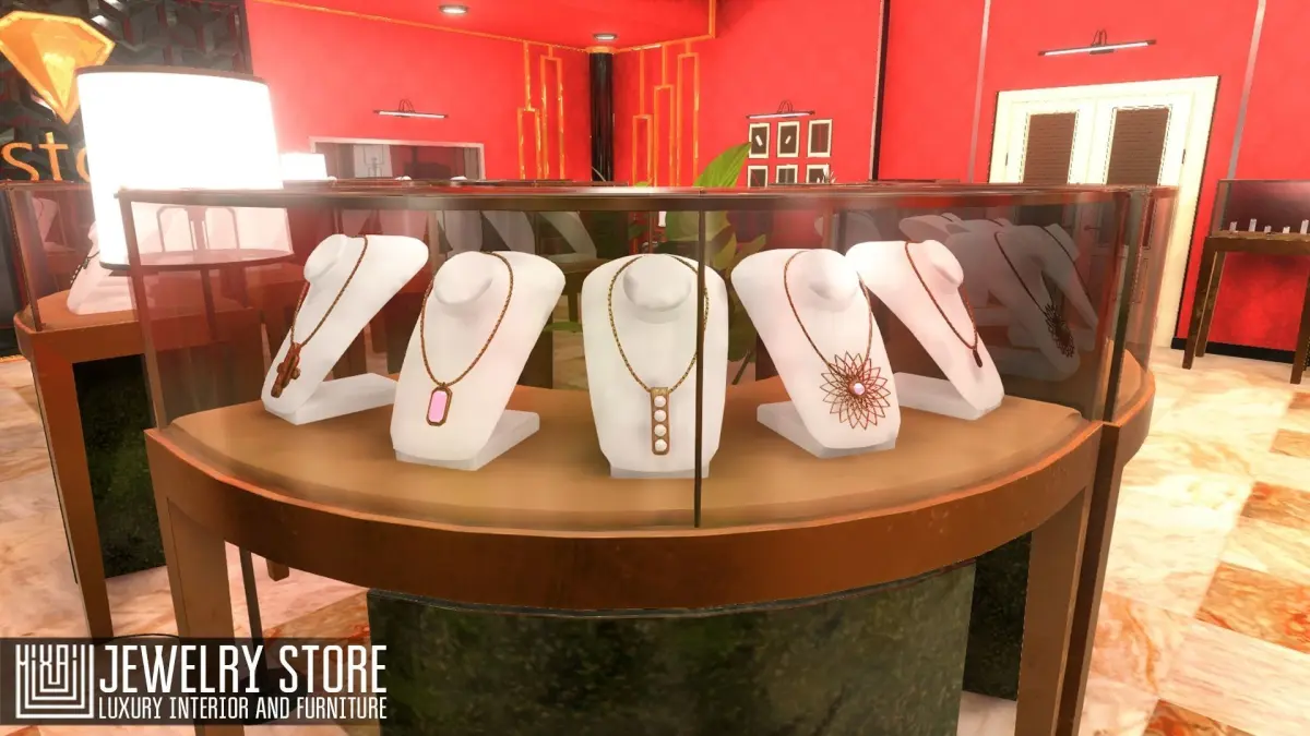 Mixaill studio presents a good solution for your games, VR projects and simulators. Jewelry store - this is store with luxury interior and furniture includes rings, beads, chains, necklaces.