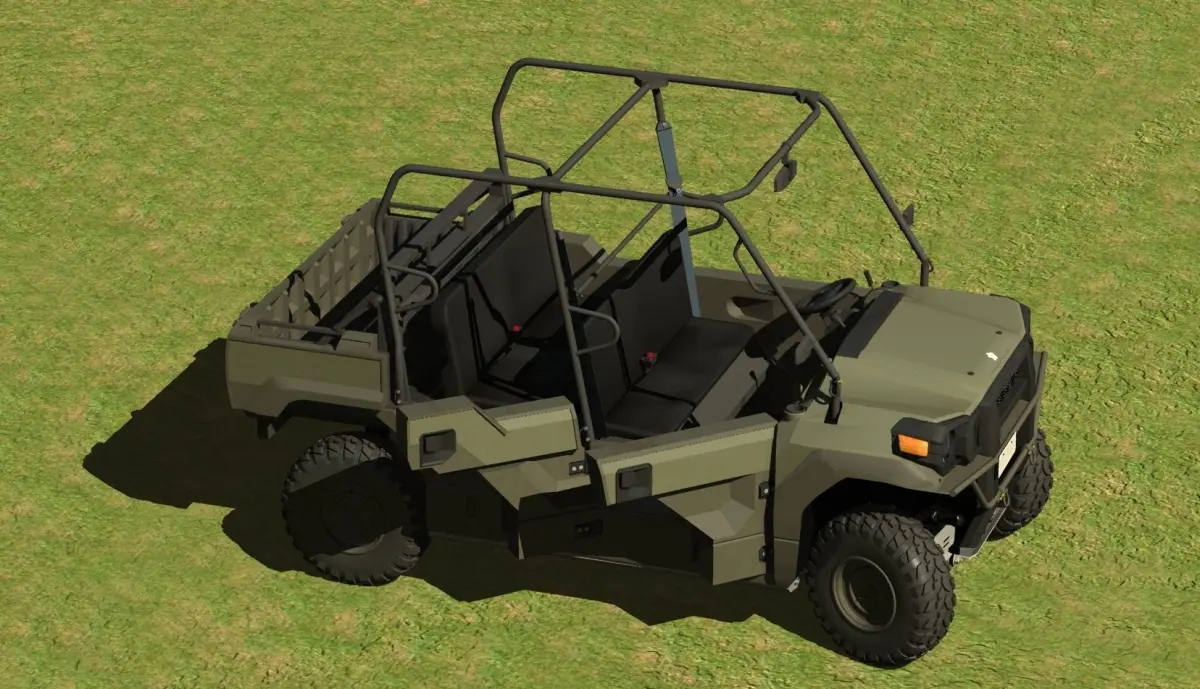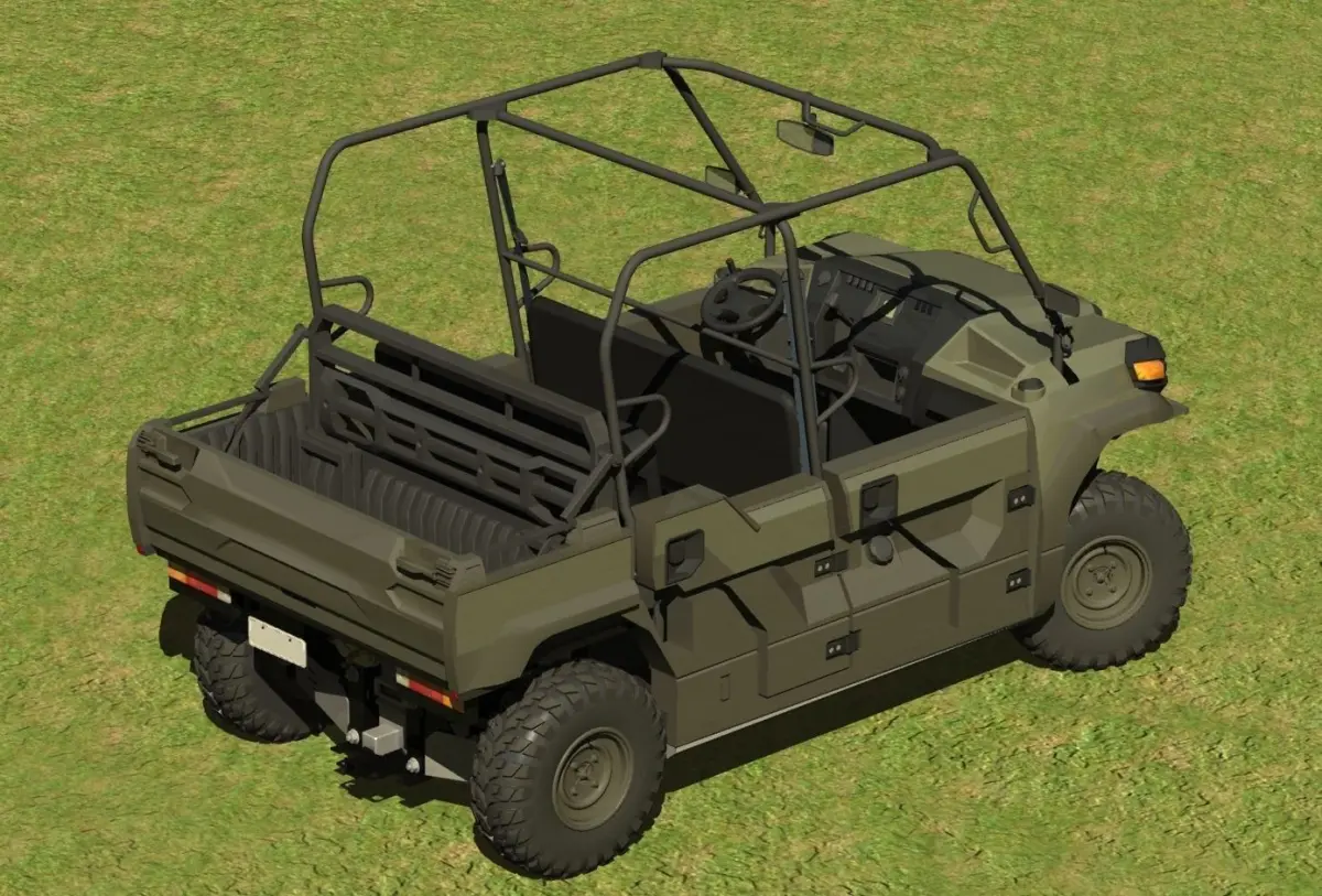 日本の陸上自衛隊でオスプレイに搭載する為2020年に採用された国内メーカーの四輪バギーです。自衛隊としては珍しく新製品を導入しています、この種の車両は通常日本国内の道路を走行できませんので自衛隊のみ特別に逆輸入して居ます、故にハンドルの位置が左に配置されて居ます。