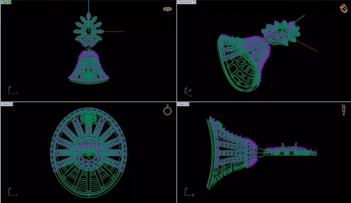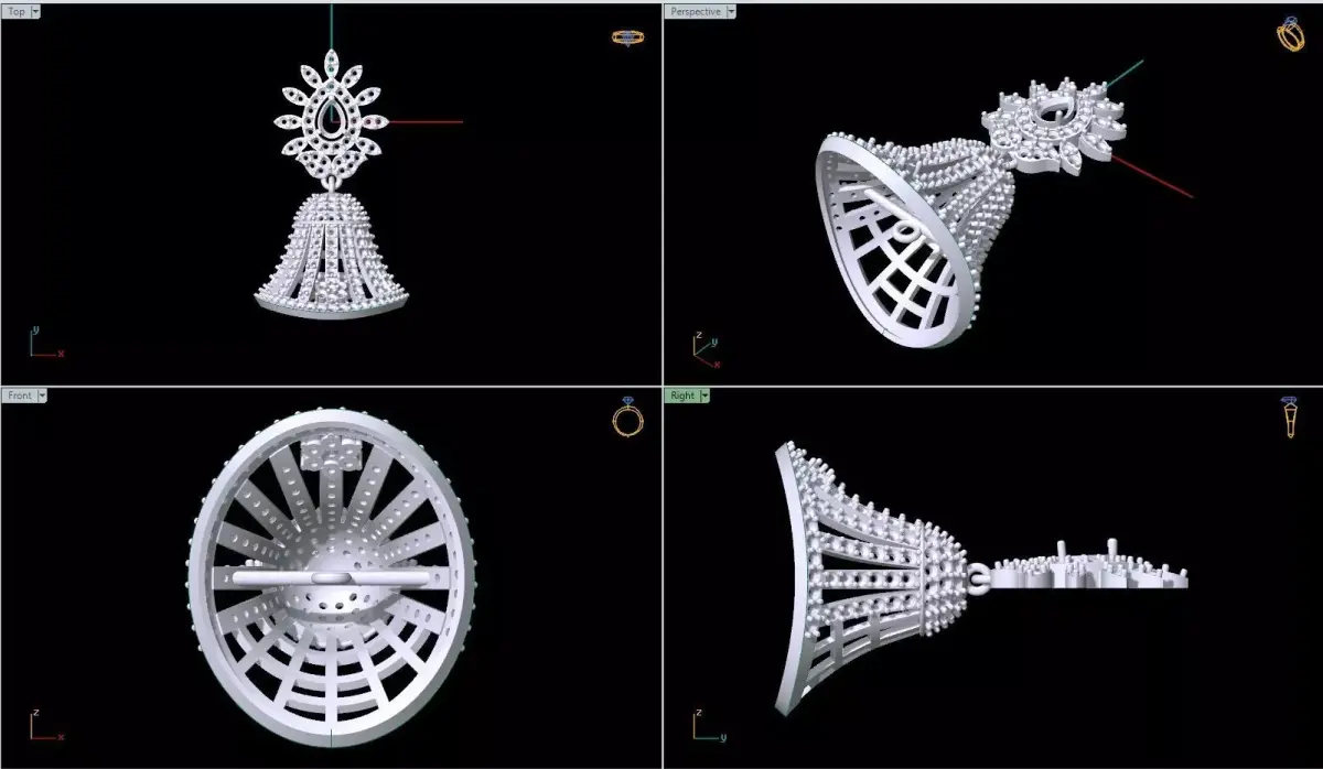 This is a jewelry gold and silver Jhumka . It is very light weight work. I made these works myself. I am a jewelry 3D CAD Designer. This work is fully prepared for CAM and other processes.