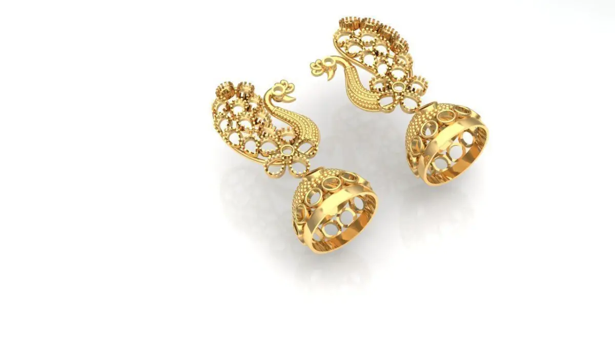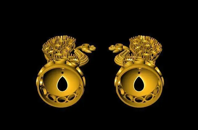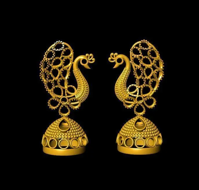 jhumka earrings with peacock 3D print model