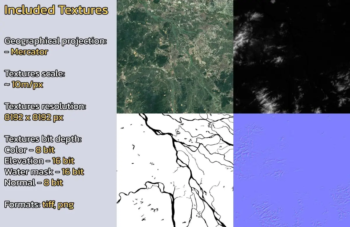 - Textures resolution: ~10m/px