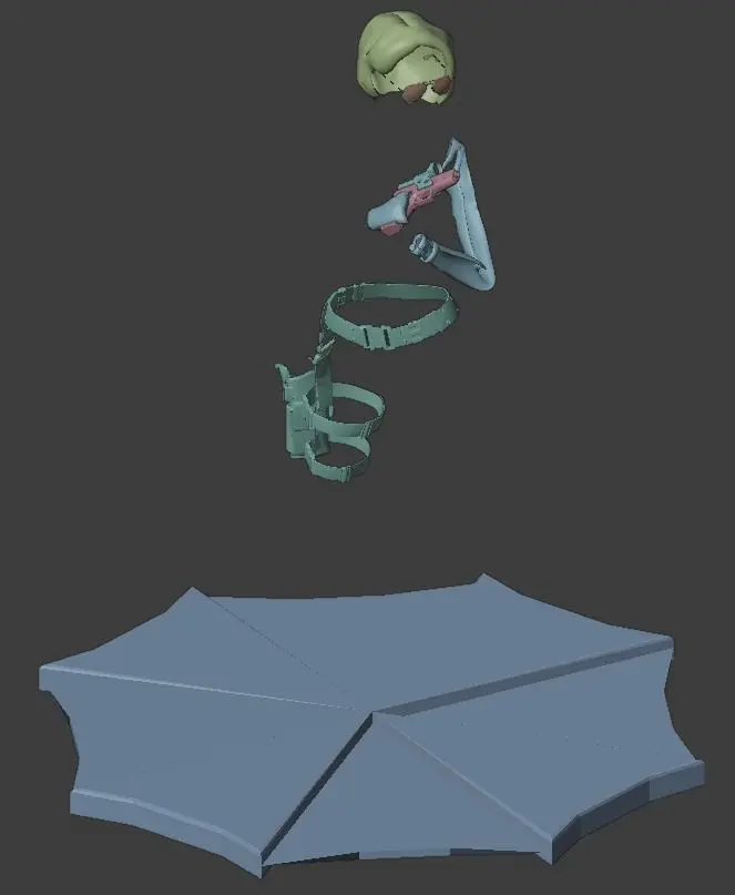 Separated parts: hair, shades, holster, weapon, weapon acc, gloves, floor