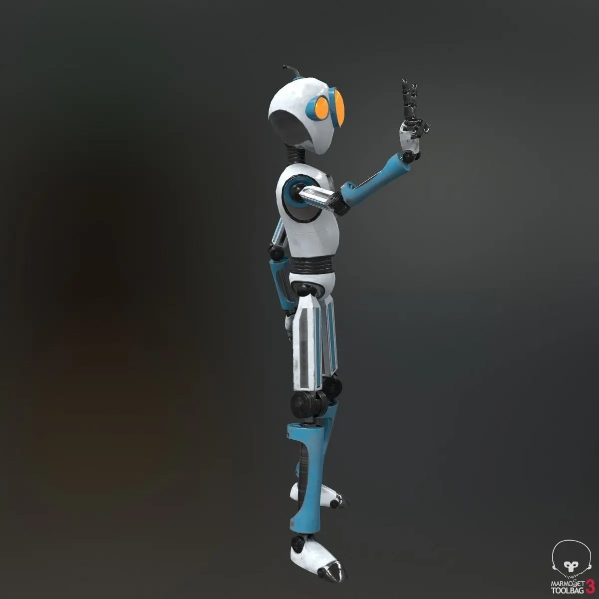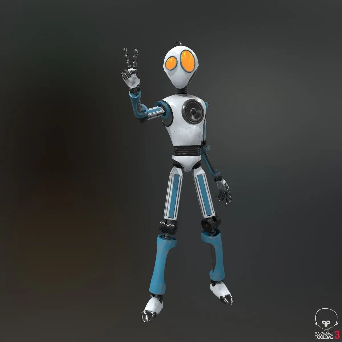 This friendly robot was modeled using 3ds Max along with a bit of help from ZBrush. He was textured for PBR using Substance Painter. This package includes texture maps for Metallic/Roughness setups as well as a Metallic/Smoothness option for use in Unity. He is rigged and game-ready.