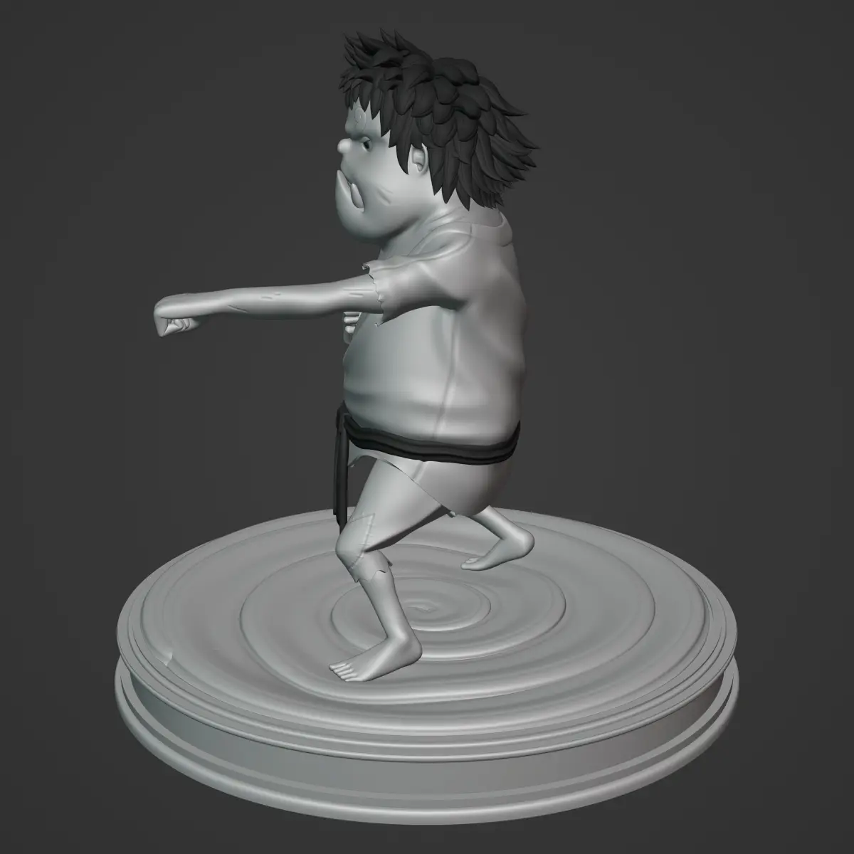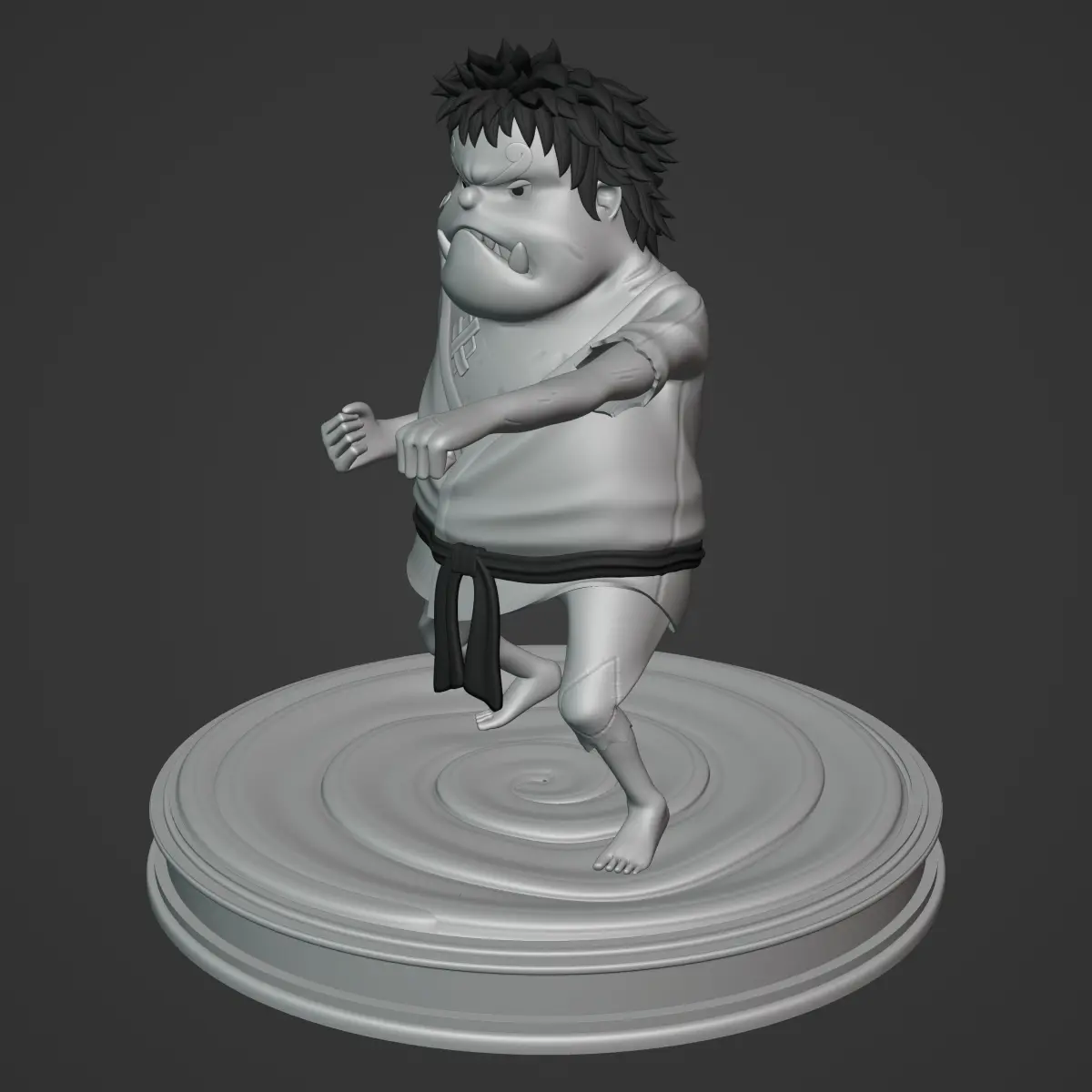 Straight out of the SBS volumes of the ONE PIECE manga, THE FIRST CHILD OF THE SEA JINBE in his children's version is a little boy who trains hard in the deepest neighborhood of the fish-man island. I hope you enjoy it. Please leave good product reviews. Well, the project includes Two versions of the mini Jinbe:1- Character: she is ready to make subdivisions in her mesh, with a rigged with inverse kinematics and many groups of vertices. Despite looking for low poly, there was also the approach of modeling all the details of the character in 3d, so each thing was tried to have its own mesh. Regarding the UV maps, they are without overlapping and there are several, they have a resolution of 4k each, this in order not to compact the textures too much.2- ready to print: this version of the model has a higher polygonal density, since it is intended to be printed by means of a 3D printer. It shares the same UV maps and textures as the low poly version and includes a base to decorate.