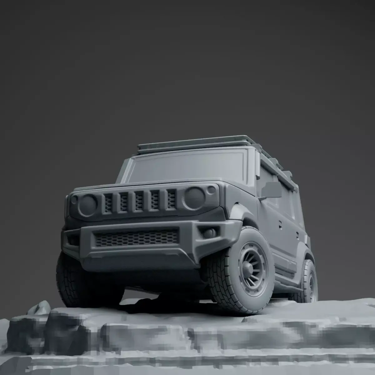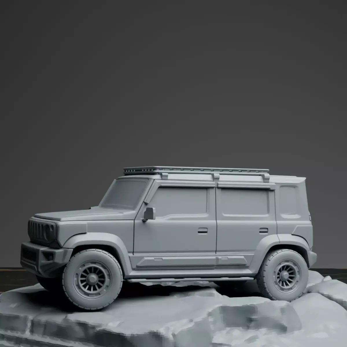 This is a print-ready Jimny 5-Door scale car STL model, carefully modeled with clean topology and accurate exterior proportions inspired by the iconic compact SUV from Suzuki.