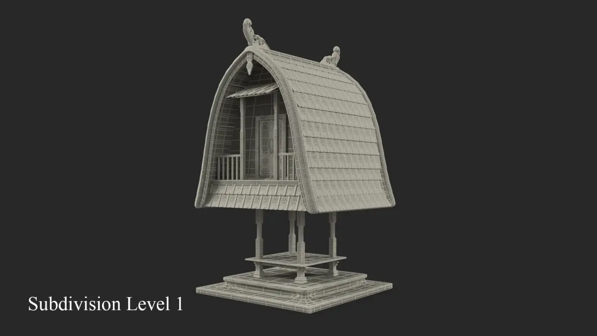 "Capture a slice of rural Bali with this detailed Jineng — a traditional rice barn built on stilts. Symbolizing abundance and agricultural heritage, it’s perfect for village scenes, heritage zones, or countryside backdrops.