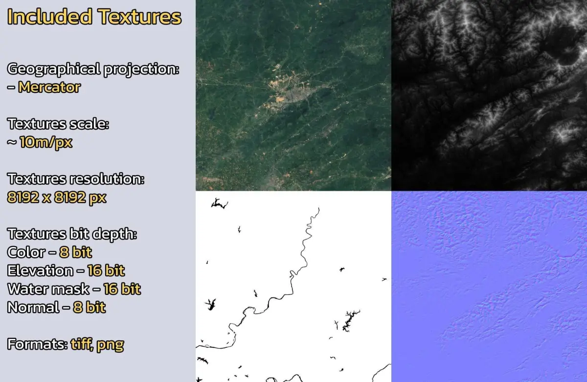 Warning: minor clouds/artifacts may be present on the diffuse color satellite texture due to the nature of the dataset. Check product images.