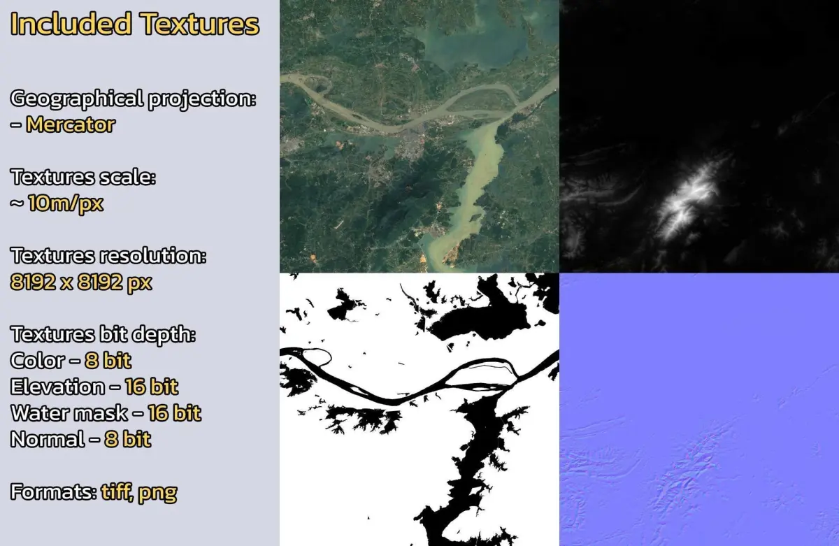 - Textures resolution: ~10m/px