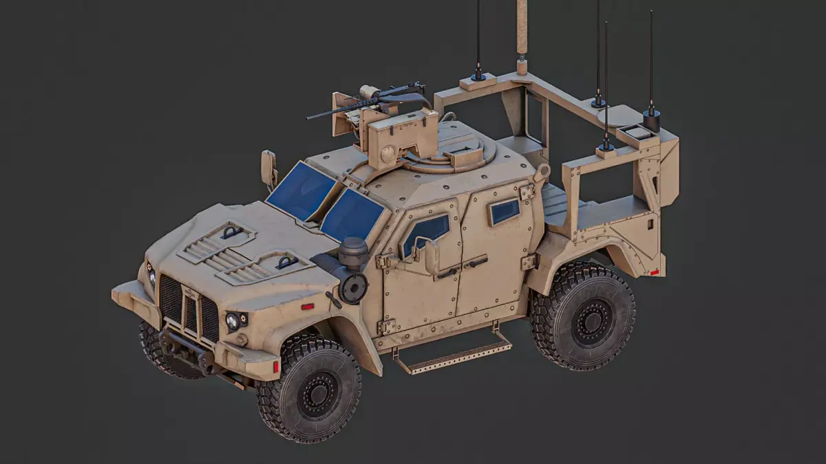 High Quality 3D model of Oshkosh JLTV + Crows Kongsberg + M2 , accurate detailsCan be used in games, simulations, visualizations