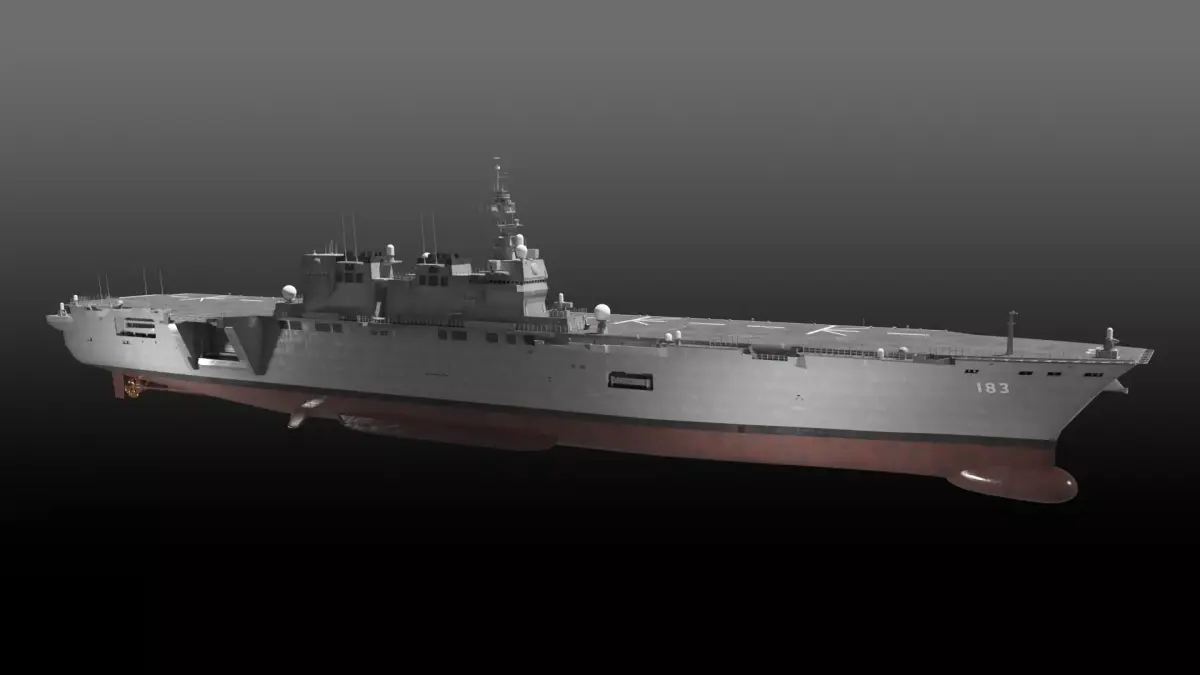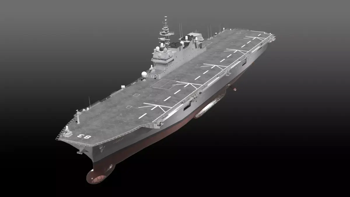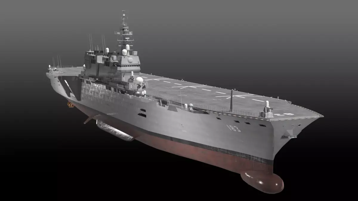 JMSDF Izumo class helicopter destroyer, DDH-183 Izumo. Modeled with blender 3.3, PBR texture, 27 textures used. UV mapped for main hull (Material hull,bottom,deck). Texture package are separated to be downloaded. FBX and OBJ format supported. Some materials may only work properly with Blender. 220137 polygons and, 243401 vertices in all.
