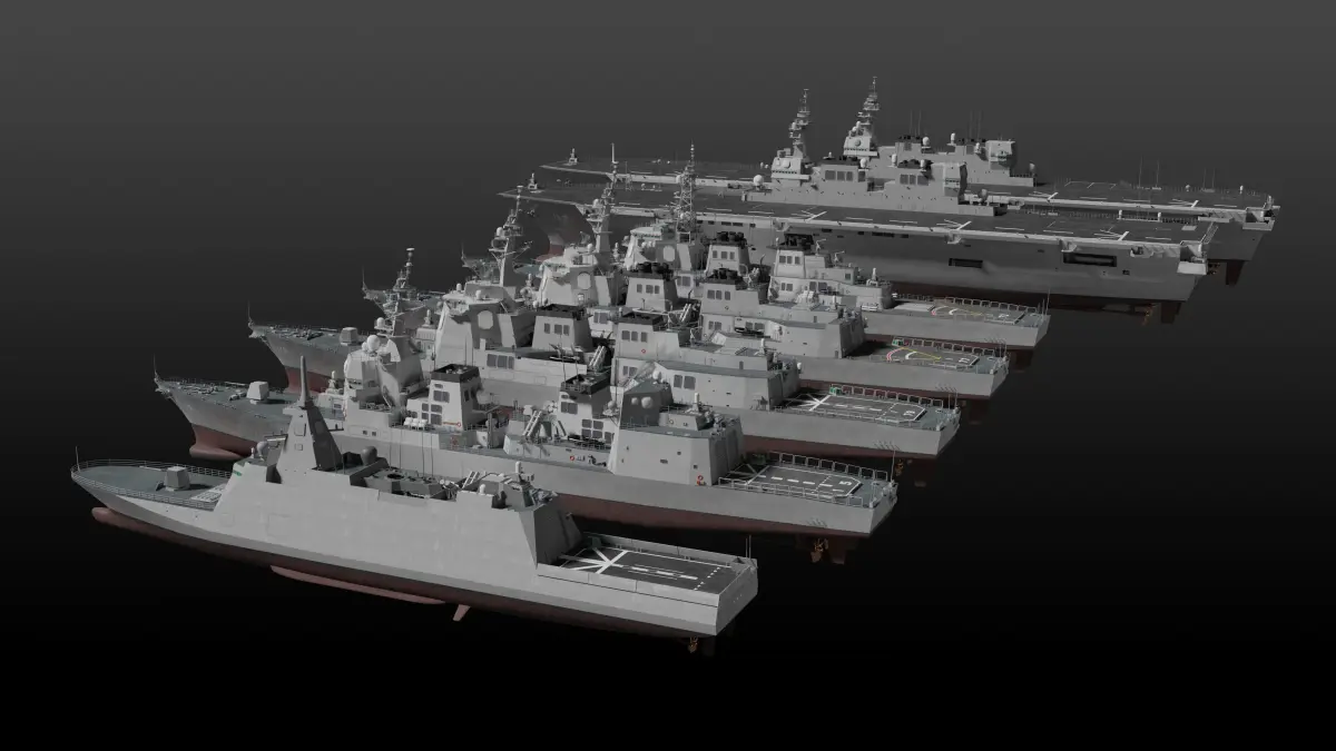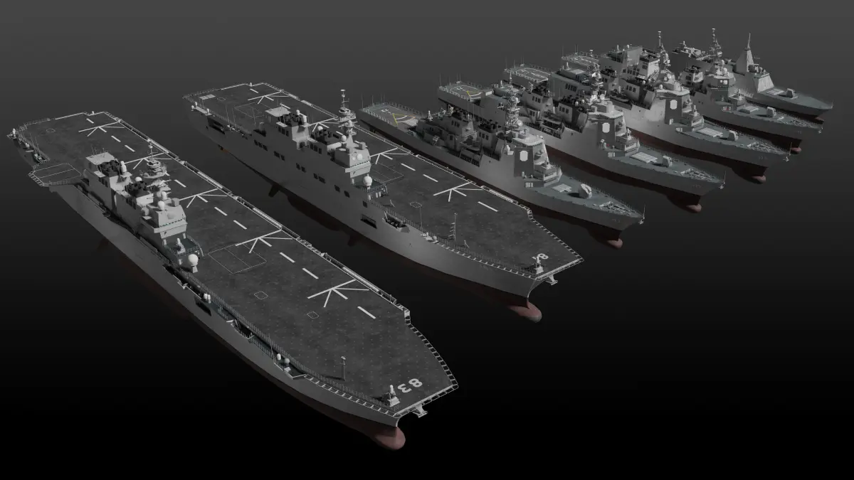 This is a collection of Japan Maritime Self Defence Force surface warships. The model file include 7 types: Izumo class, Hyuga class, Kongo class, Atago class, Maya class, Akizuki class, Mogami class. 36 textures used. Textures package is separeted from model file, You Have To Download the Texture Package or the materials are not going to work. Blender, OBJ and FBX format supported.
