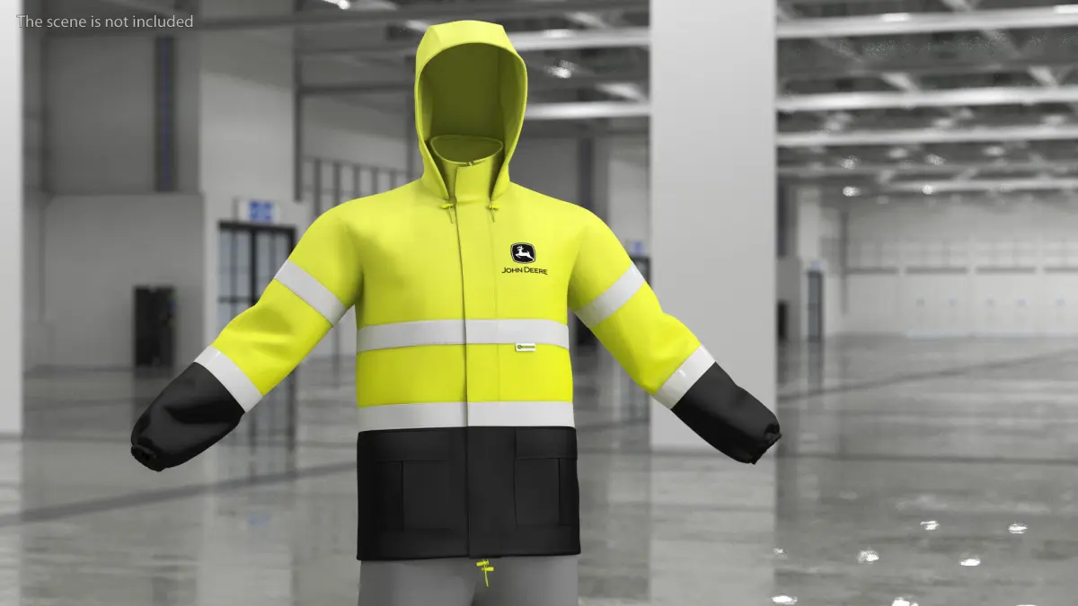 John Deere Rain Jacket High Visibility is a high quality, photo real 3d model that will enhance detail and realism to any of your rendering projects. The model has a fully textured, detailed design that allows for close-up renders, and was originally modeled in 3ds Max 2014 and rendered with V-Ray. Renders have no postprocessing!