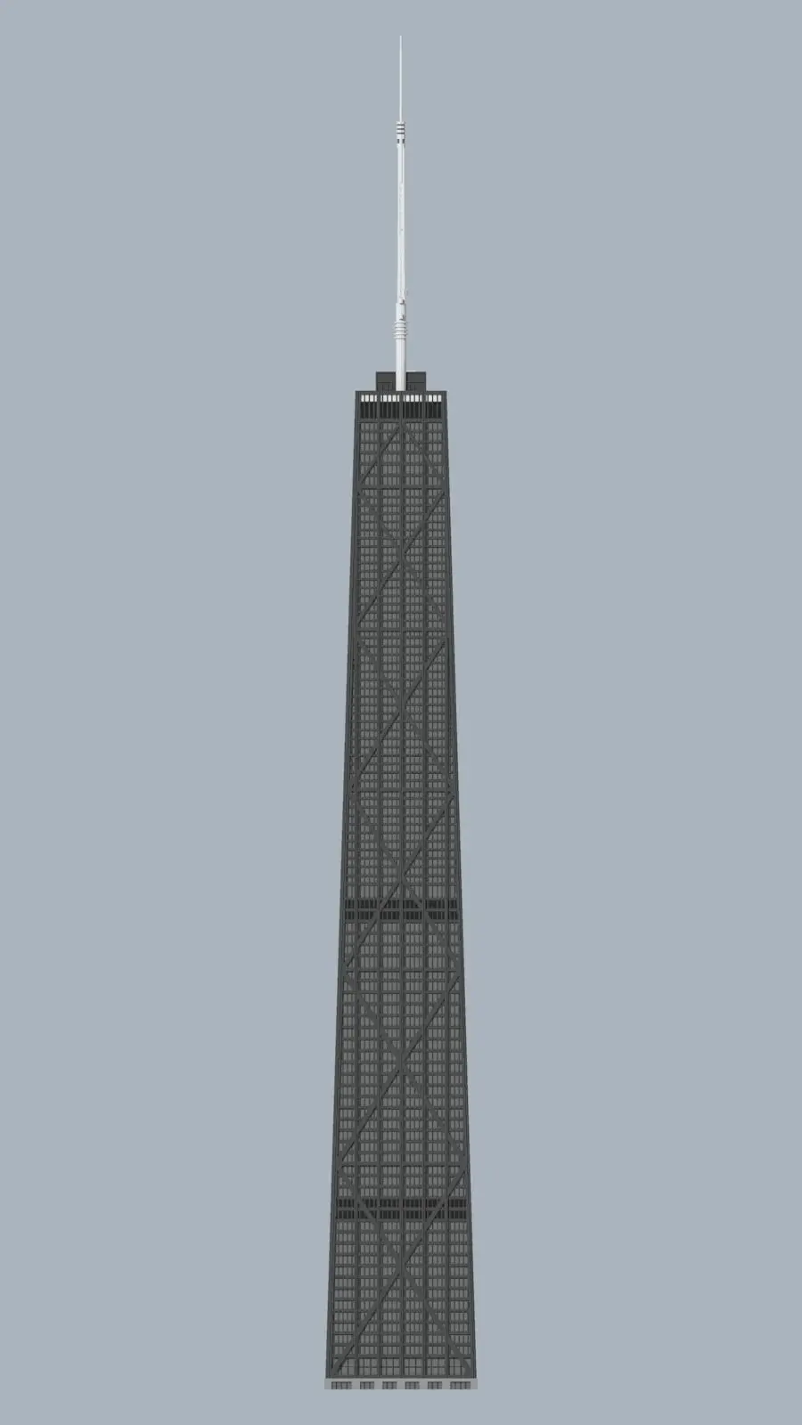 Because this building is very large and tall, there are multiple methods to print this model. There are 4 parts that must be glued together. Part 1 (HancockPart1.stl) encompasses the first 42 floors of the tower. Part 2 (HancockPart2.stl) contains the rest of the main tower to the roof. The antennae each have their own files (HancockEastAntenna.stl and HancockWestAntenna.stl). It is highly recommended they printed separately to ensure the final product is clean without any strings or burrs. The antennae may be difficult to print well even on their own. It is recommended to use the lowest possible heat.