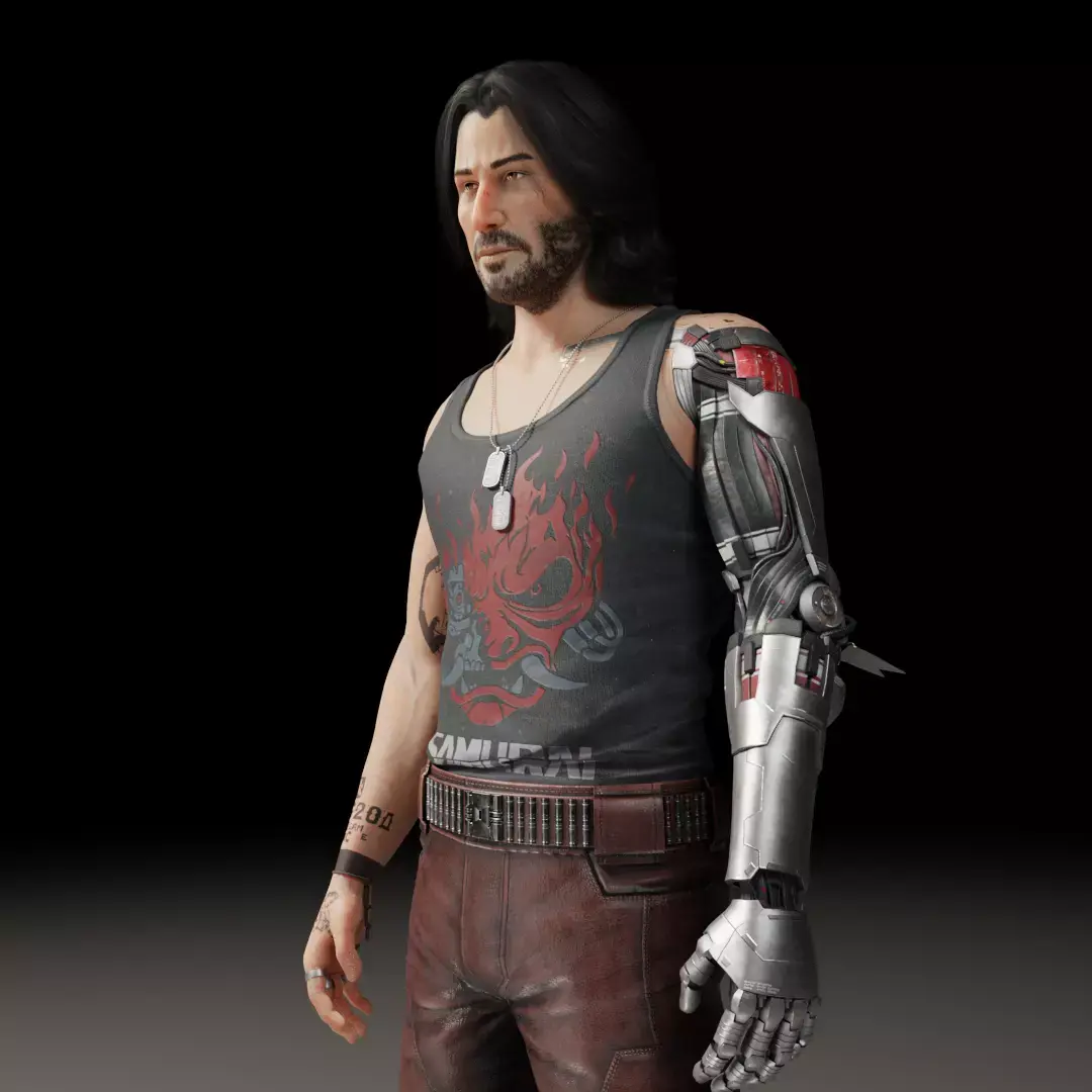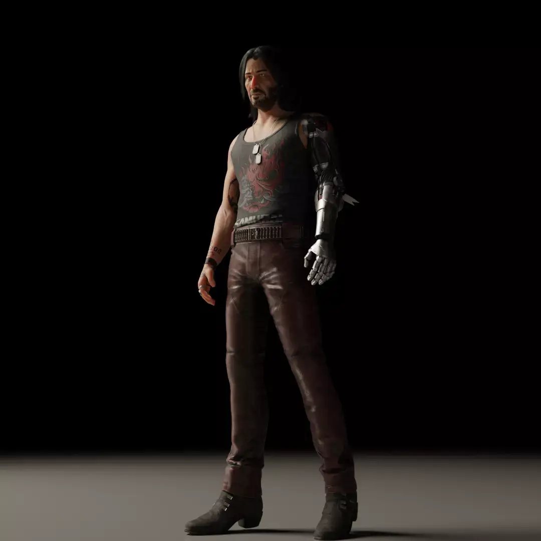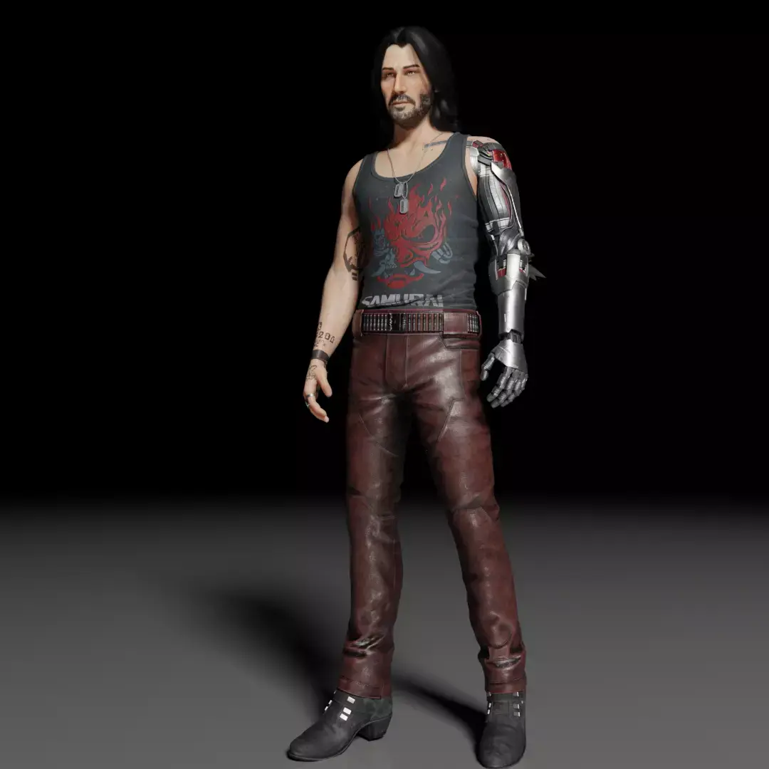 Johnny Silverhand - Keanu Reeves (Cyberpunk 2077) a highly detailed 3D model of Keanu Reeves, inspired by the Cyberpunk 2077. The model's Fully rigged and optimized for real-time use, it's perfect for games, AR/VR, animation, or film. Features realistic textures, clean topology, and expressive rig controls — ready for any use in any project.