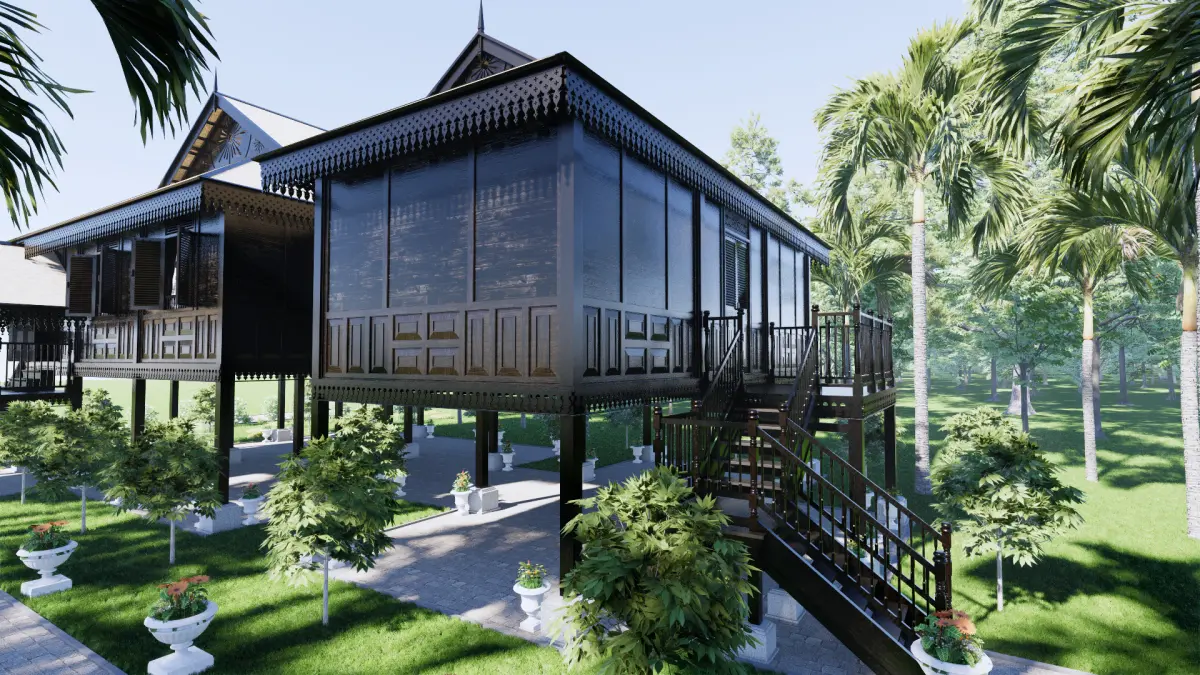 Johor traditional house is a traditional house of the Malay & Bugis community in the territory of Johor, Malaysia. This house is also called the Rumah Bumbung Limas Johor, whose design was initially influenced by Bugis architecture, a result of the Bugis people migrating to Johor in ancient times. Nowadays, pyramid roof houses can be found in many areas of Johor which still maintain their culture. The unique shape of this house can be seen from the floor which is higher than the ground level and the roof which slopes low on the sides so that it looks slimmer horizontally. then the roof cascade which is decorated with various plasterboard and wall carvings as well as the underfloor covering which is also filled with carvings from local people.The house was designed using the Sketchup application and rendered using Enscape to produce a more realistic appearance. There are 6 layers of structural elements in the application so that it makes modeling easier and more detailed and neater. The textures and materials used are included in the SketchUp application. with that, everything shown in the preview image is included in the sketchup application which contains everything. This 3D model sketch can be converted into various applications such as fbx, obj, 3ds, blend, and others. This 3D model can be used for students, researchers, architects, civil construction, humanists and many others.For further questions, you can do this via the shop or Email : 3rd.summer.studio@gmail.com ; Whatsapp : +6289692630617 ; Instagram : 3rd_summerstudio