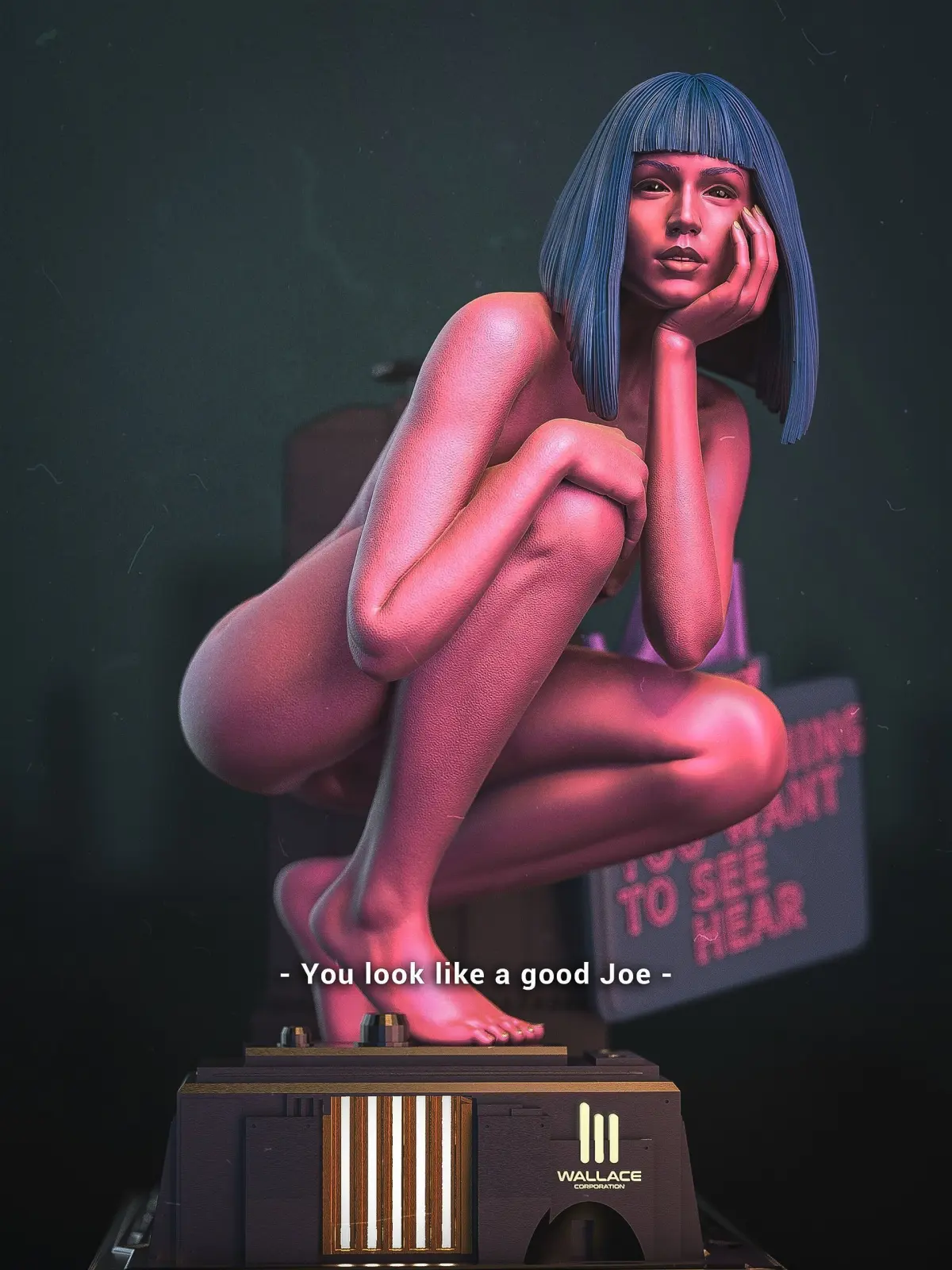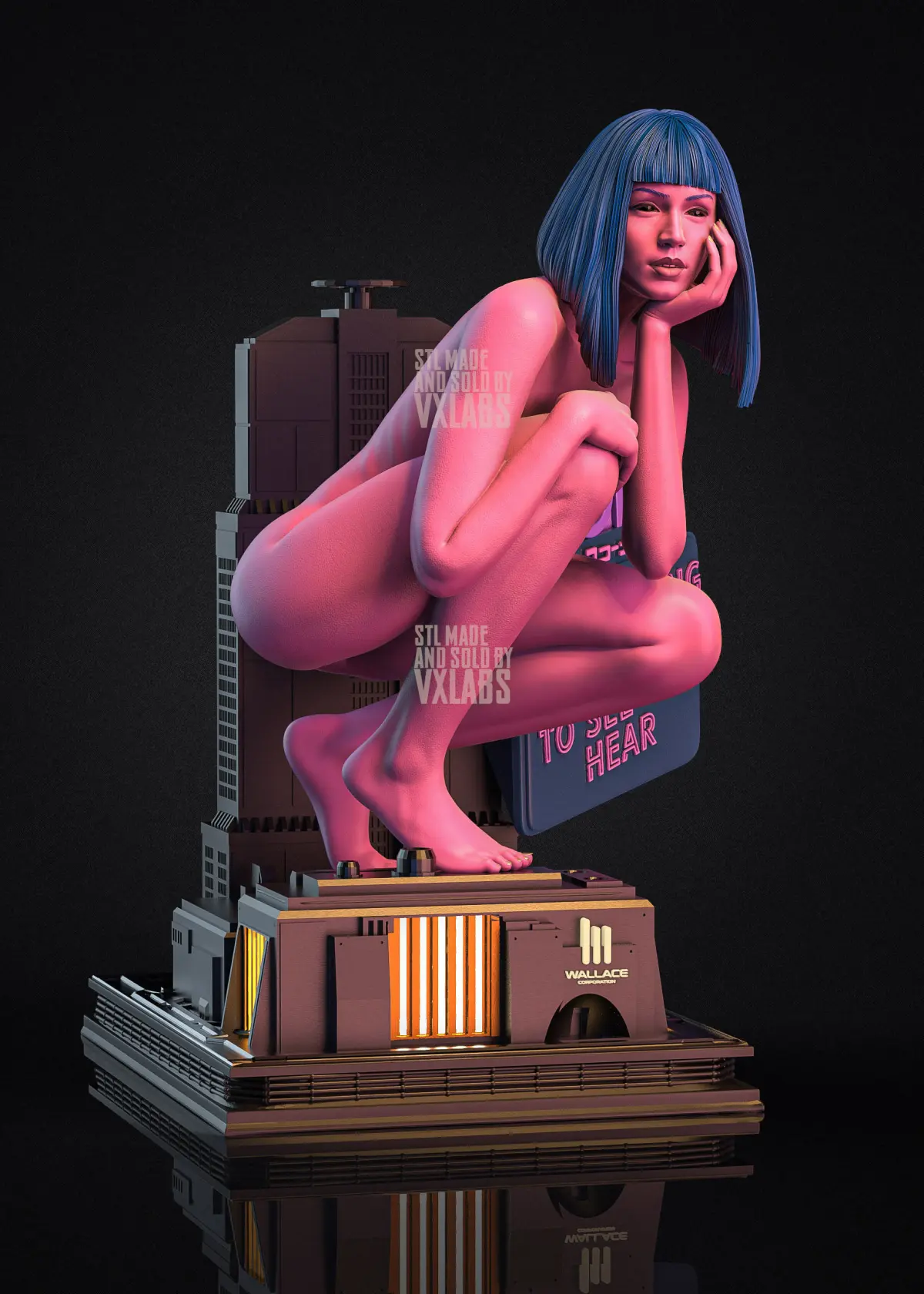 VXLabs is excited to give you the realistic 3D printable STL file of Joi, from Blade Runner 2049. Cut and keyed files, ready for printing including pre-supported files. Consists of micro details which goes until skin pores. Also includes hollow pipings inside the base for you to light up the Wallace buldiging from inside.