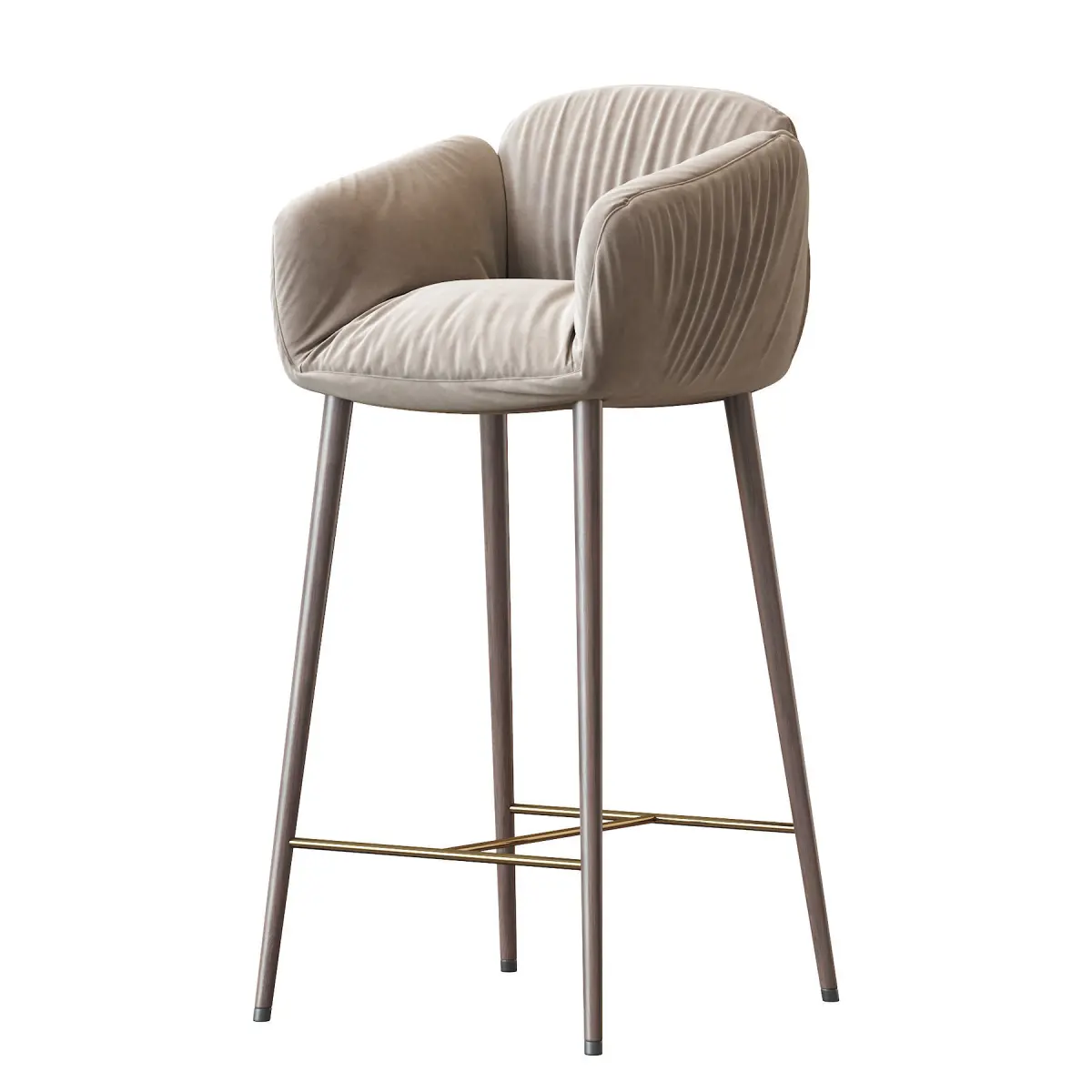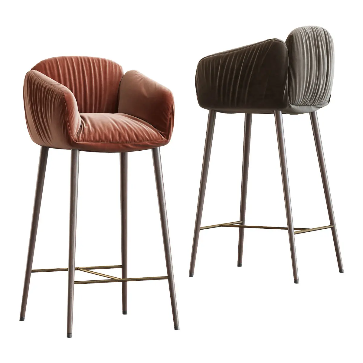 There are many different types, construction materials and models. Bar stools are often made of wood or metal. There are bar stools with and without armrests, backs, and padding or upholstery on the seat surface. Bar stools can range from basic wooden designs to more complex ones with adjustable height. Extra tall and extra short are common features, as well as indoor bar stools and outdoor bar stools. Some bar stools have backs, while most do not. In commercial settings, swivel and floor mounted bar stools are common. Floor mounting renders the stool immovable, so it cannot be stolen or used as a weapon in a bar fight. Floor-mounted stools generally are mounted on a column, but stools with legs can also be secured to the floor using metal brackets.