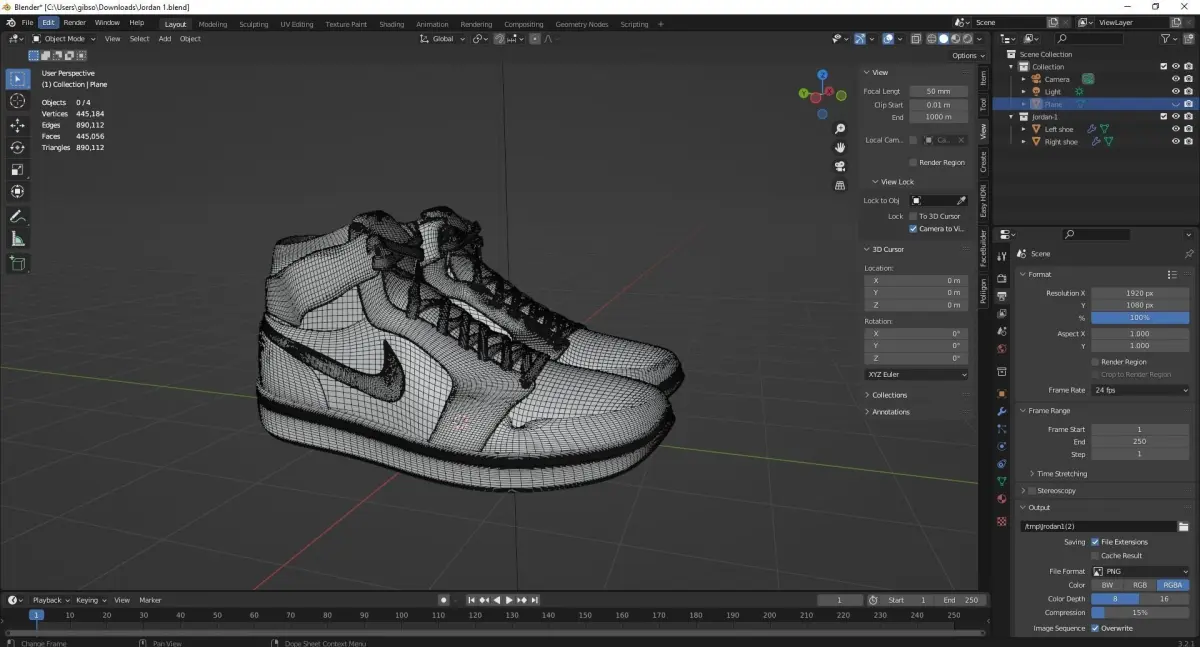 Blender materials are also inside. One sneaker -222,528 polys, 222,592 verts .