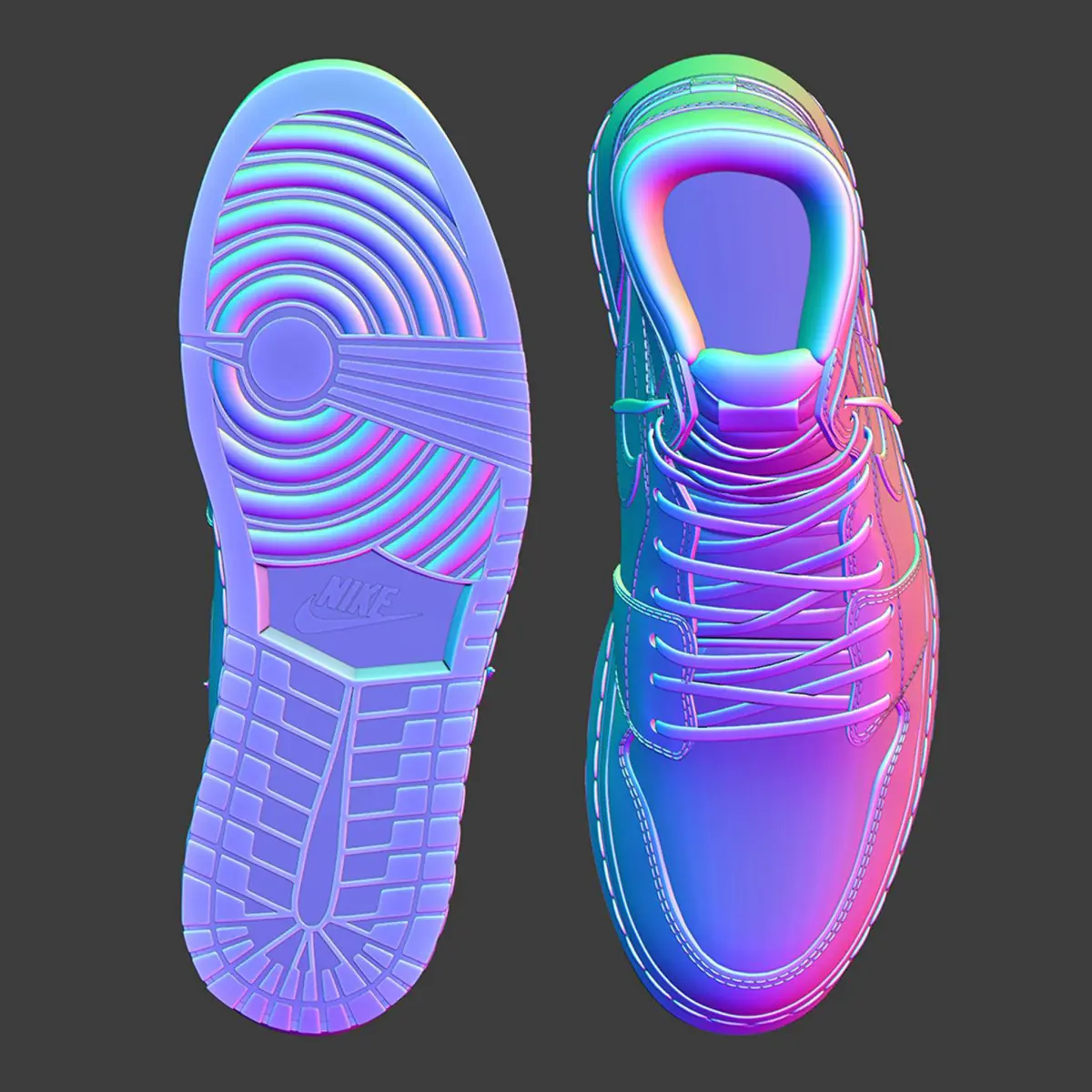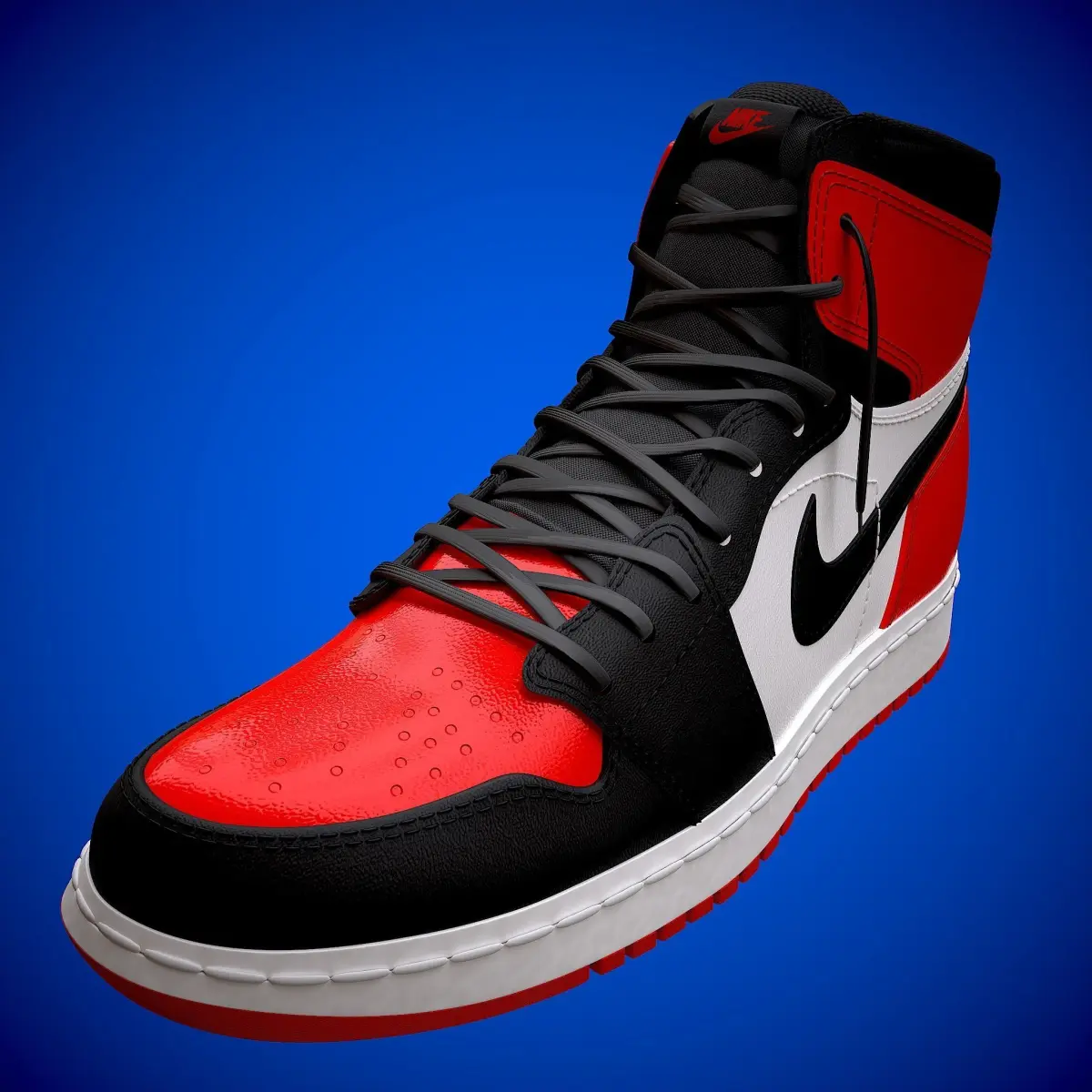 A 3D shoe model of Jordan 1s modeled in Blender would be a digital replica of the popular Air Jordan 1 sneaker. The model would be created using 3D modeling techniques in Blender software, allowing for a highly detailed and realistic representation of the shoe. The model would include intricate details such as the stitching, the Nike swoosh logo, the shoelaces, and the various panels that make up the shoe's exterior. The Jordan 1s model could also feature different colorways, allowing for customization and experimentation with different designs. Overall, a 3D shoe model of Jordan 1s in Blender would be a highly accurate and versatile representation of this iconic sneaker.