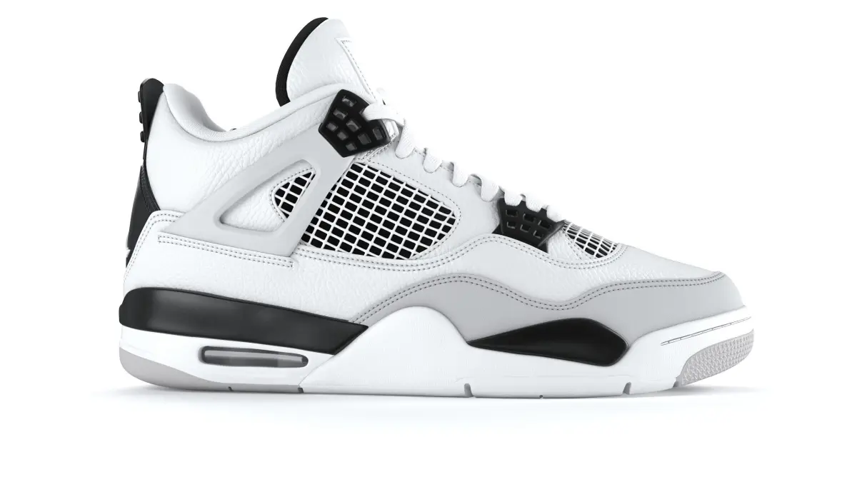 • GeometryThis 3D model is a faithful digital replica of the real-world Air Jordan 4 Retro Military Black sneaker. Every detail has been carefully modeled to match the original design with precision—so accurate that you won’t notice any difference from the physical version.The model is constructed using clean quad-based topology with a few small triangles for efficiency. All parts of the shoe (upper, sole, and transparent elements) are separated into individual objects, making it easy to customize or animate in any 3D software.