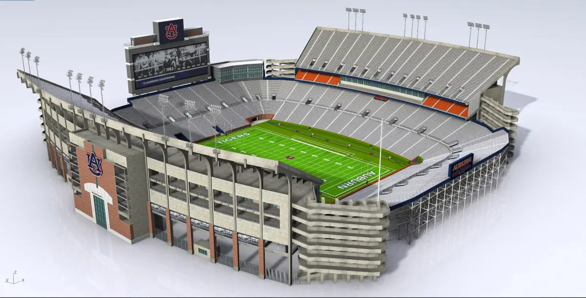 The intellectual property depicted in this model, including the brand Jordan-Hare Stadium is not affiliated with or endorsed by the original rights holders. Editorial uses of this product are allowed, but other uses (such as within computer games) may require legal clearances from third party intellectual property owners.