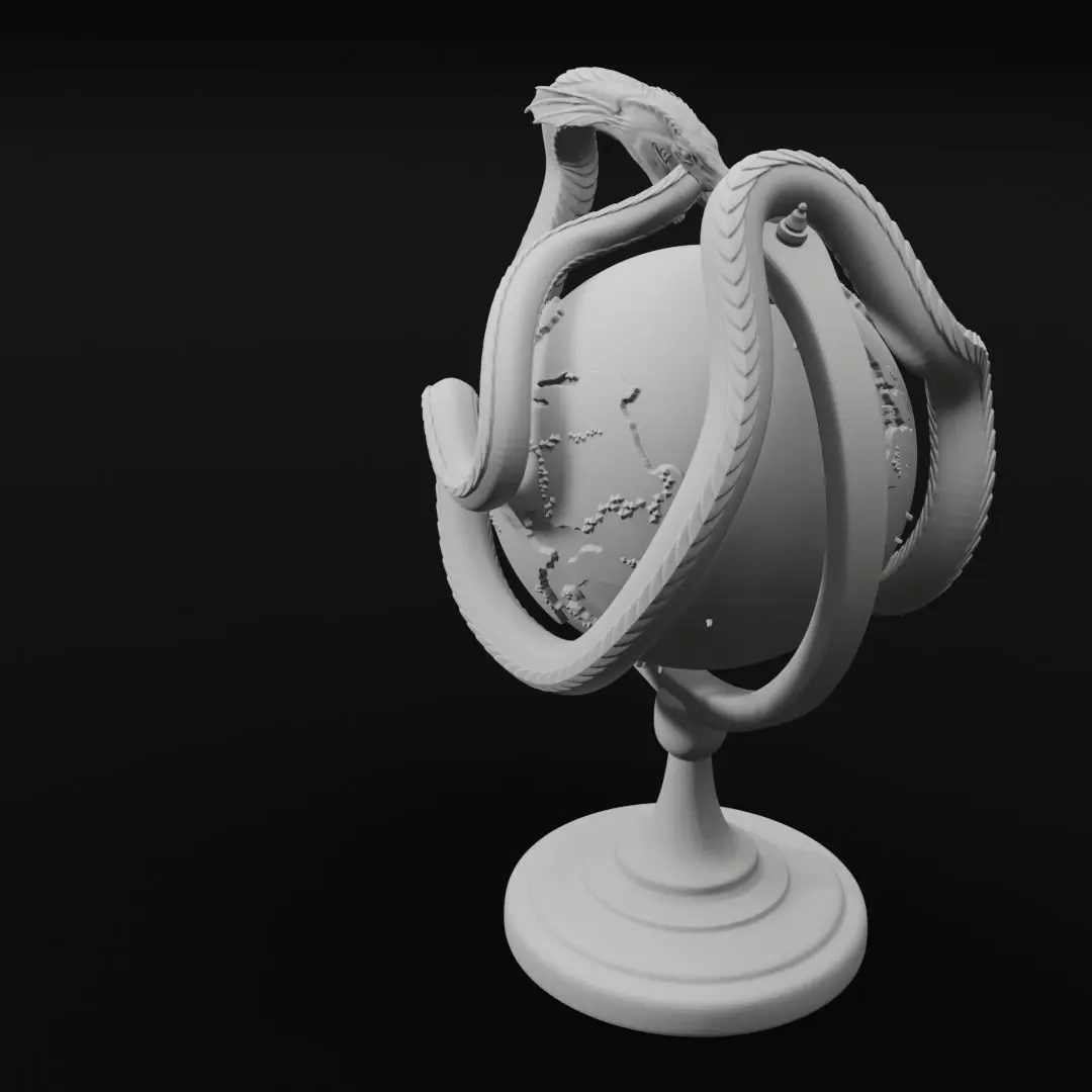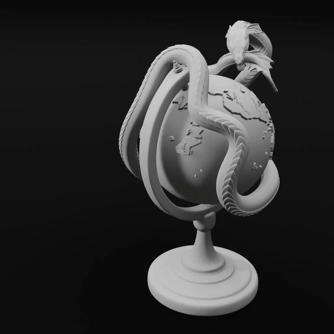 I recommend assembling and painting the globe first, then painting and assembling the world serpent over top. The height of the decoration is about 8 inches, but can be scaled up or down by 25% easily (Father scaling is likely possible within reason).