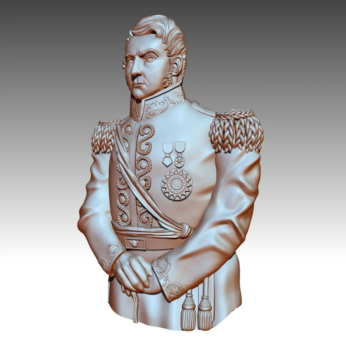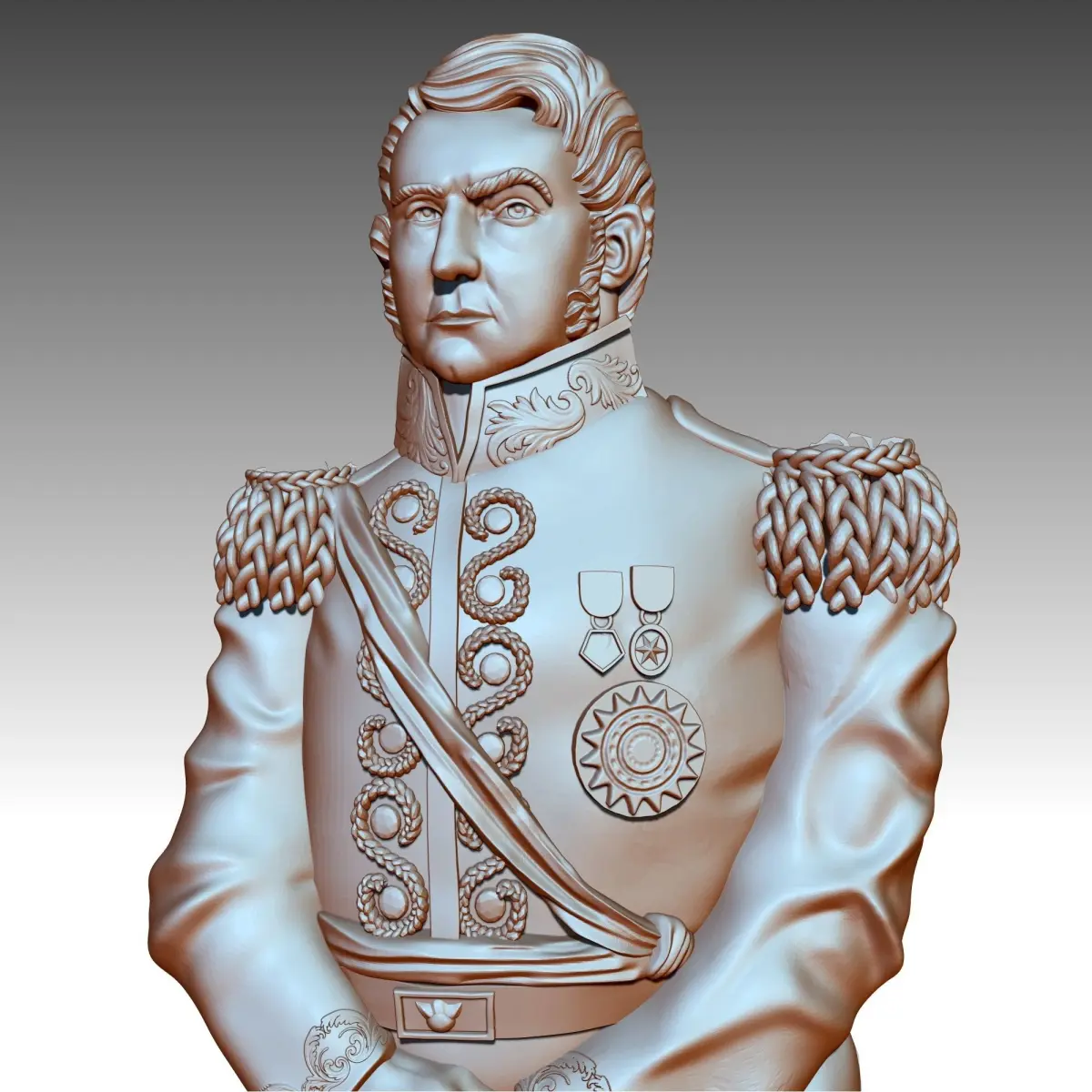 Modelo 3D de Don José de San Martín es una representación detallada del general y libertador argentino, una figura clave en la independencia de varios países sudamericanos. Este modelo viene en formato STL para que sea impreso al tamaño que desees