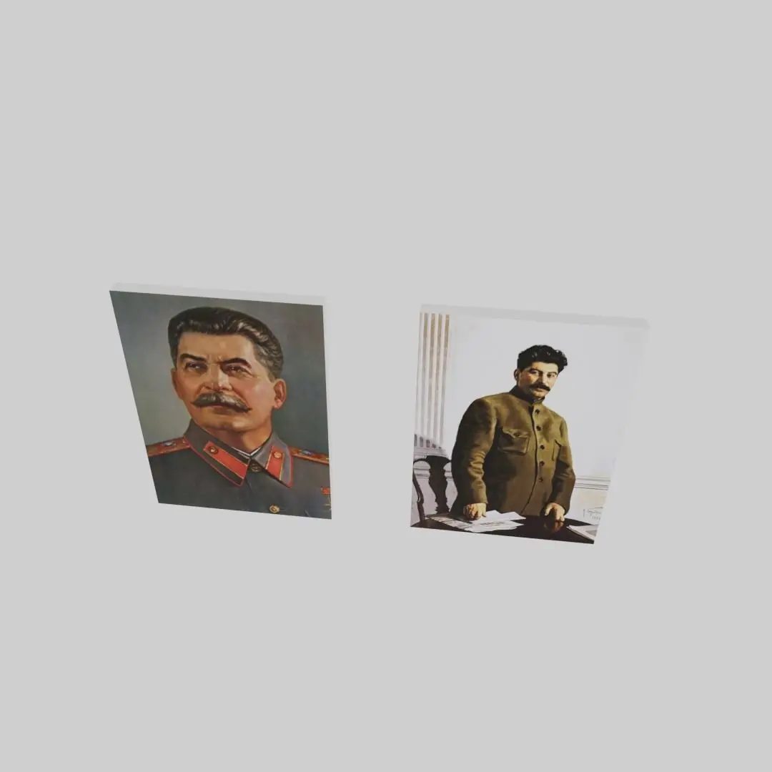 2 paintings of Soviet leader joseph stalin the 2 paintings are diffrent as you see and separated but exported together in each format so when you drop any format to your software the 2 paintings come together separated this 2 painting ready for anything you want created with original pbr material inside substance painter and maya software. You dont need to do anything just drag and drop the model to your software and render and you're done