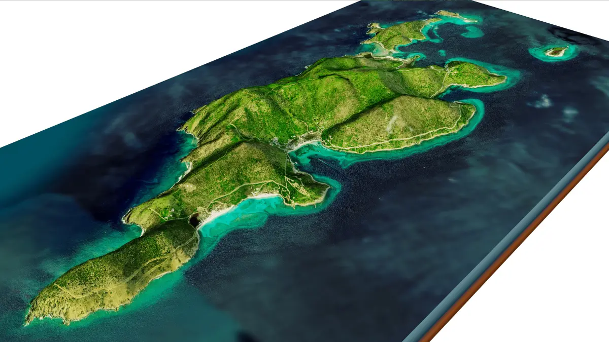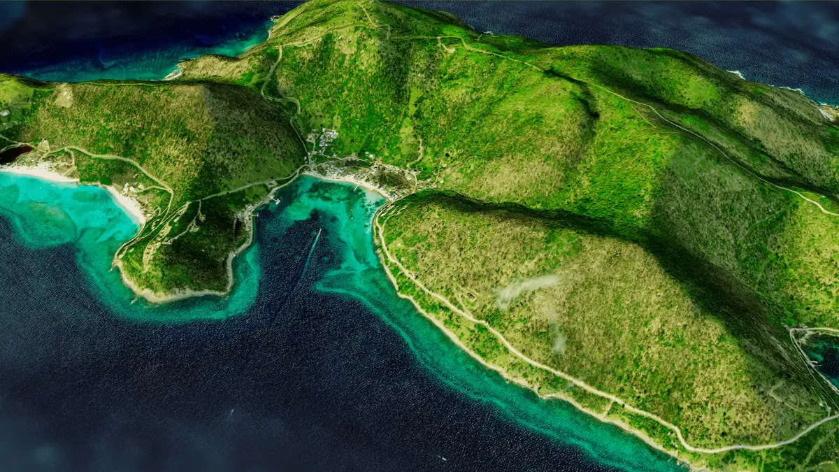 3d model landscape of Jost Van Dyke Island, British Virgin Islands, Caribbean Sea, Atlantic Ocean, British Overseas Territory.