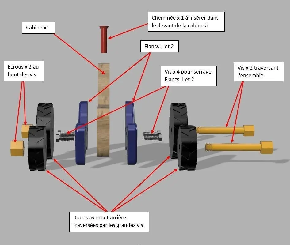 Vis et écrous sont calculés avec le jeu nécessaire pour le montage.